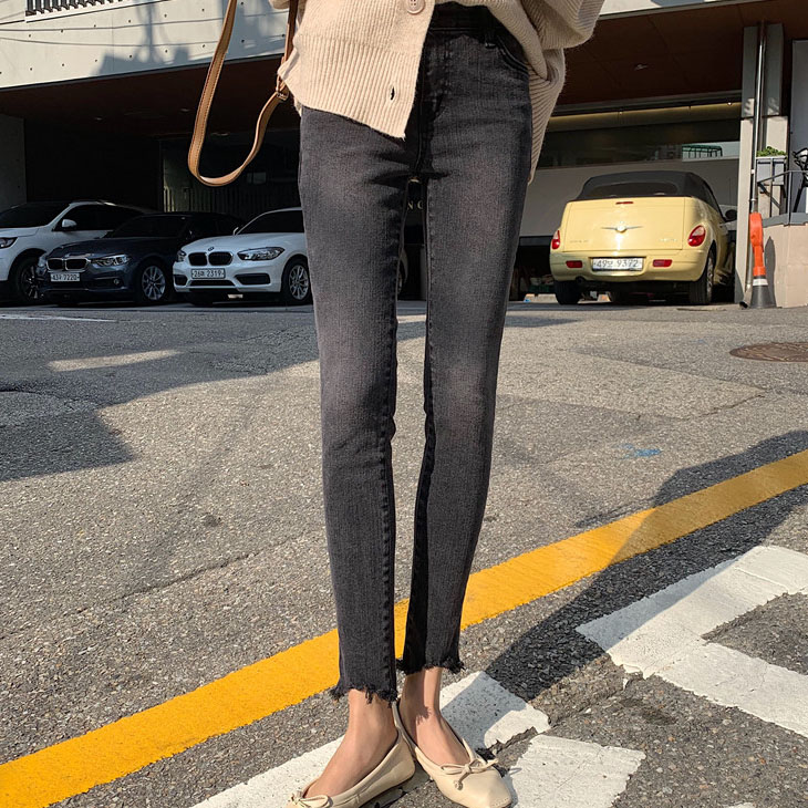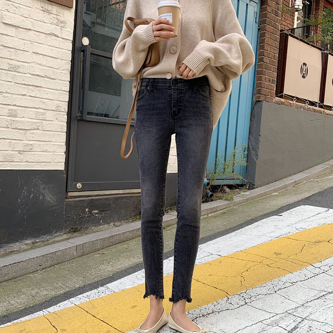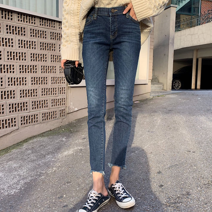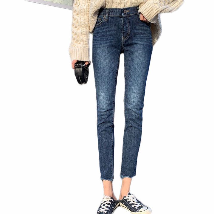 港味復古chic風褲子高腰寬松百搭休閑顯瘦加絨小腳不規則牛仔褲女
