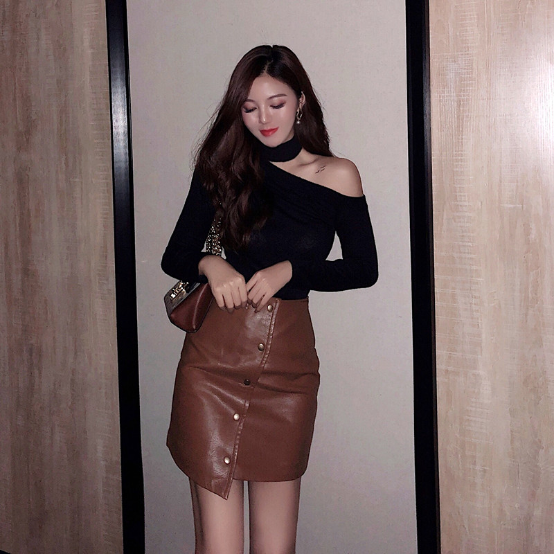 / 毛衣女2018新款韓版秋季時尚簡約修身顯瘦純色百搭露肩打底針織衫