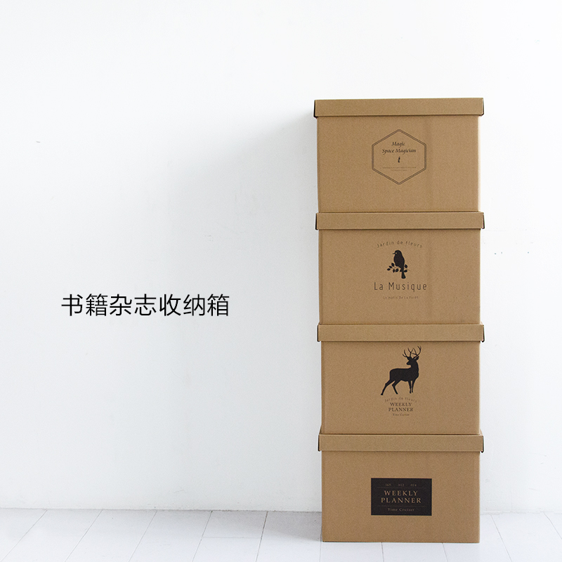 創意簡約紙質收納箱帶蓋書本雜物整理箱收納盒四個裝