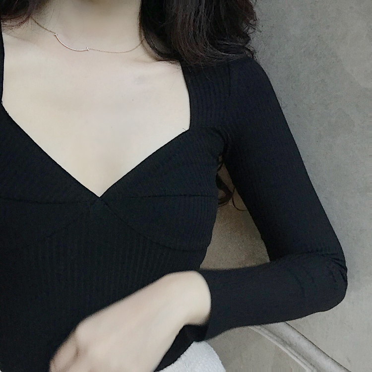 / chic早秋上衣女2018新款韓版百搭立體剪裁顯瘦打底衫長袖螺紋T恤