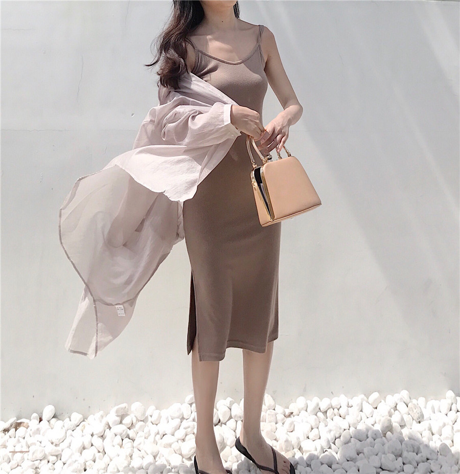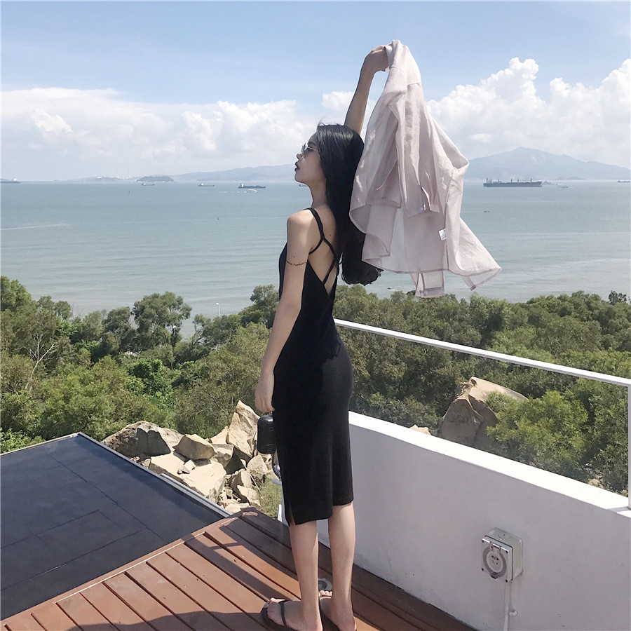 / 夏韓風chic小心機性感露背吊帶氣質顯瘦中長款修身連衣裙女打底裙