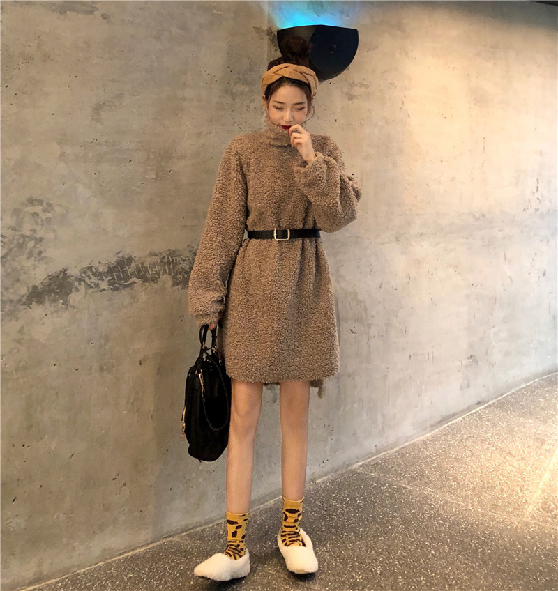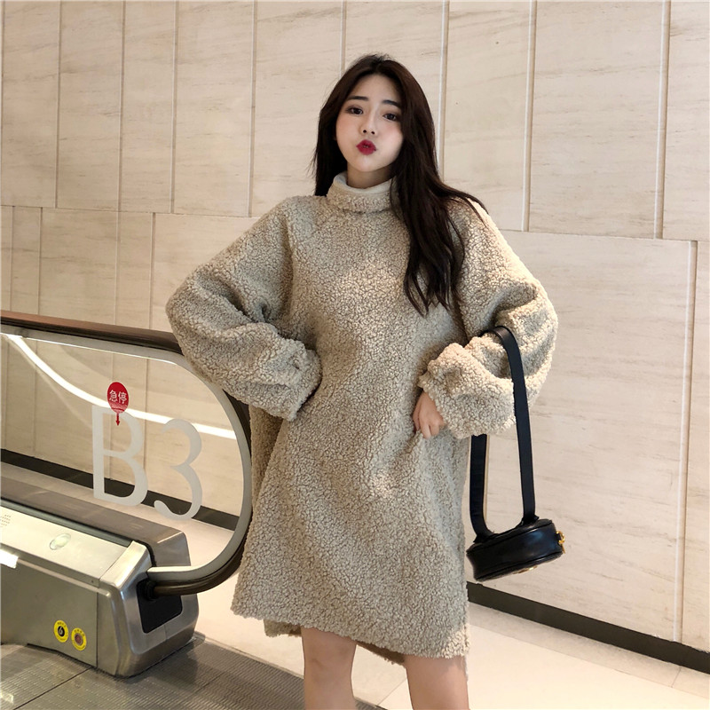 新款韓版chic時尚百搭氣質秋冬女加厚保暖寬松套頭中長款衛衣外套