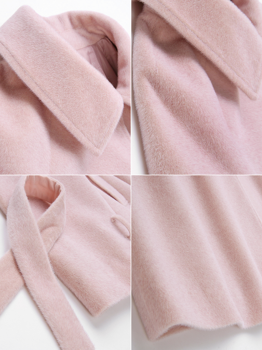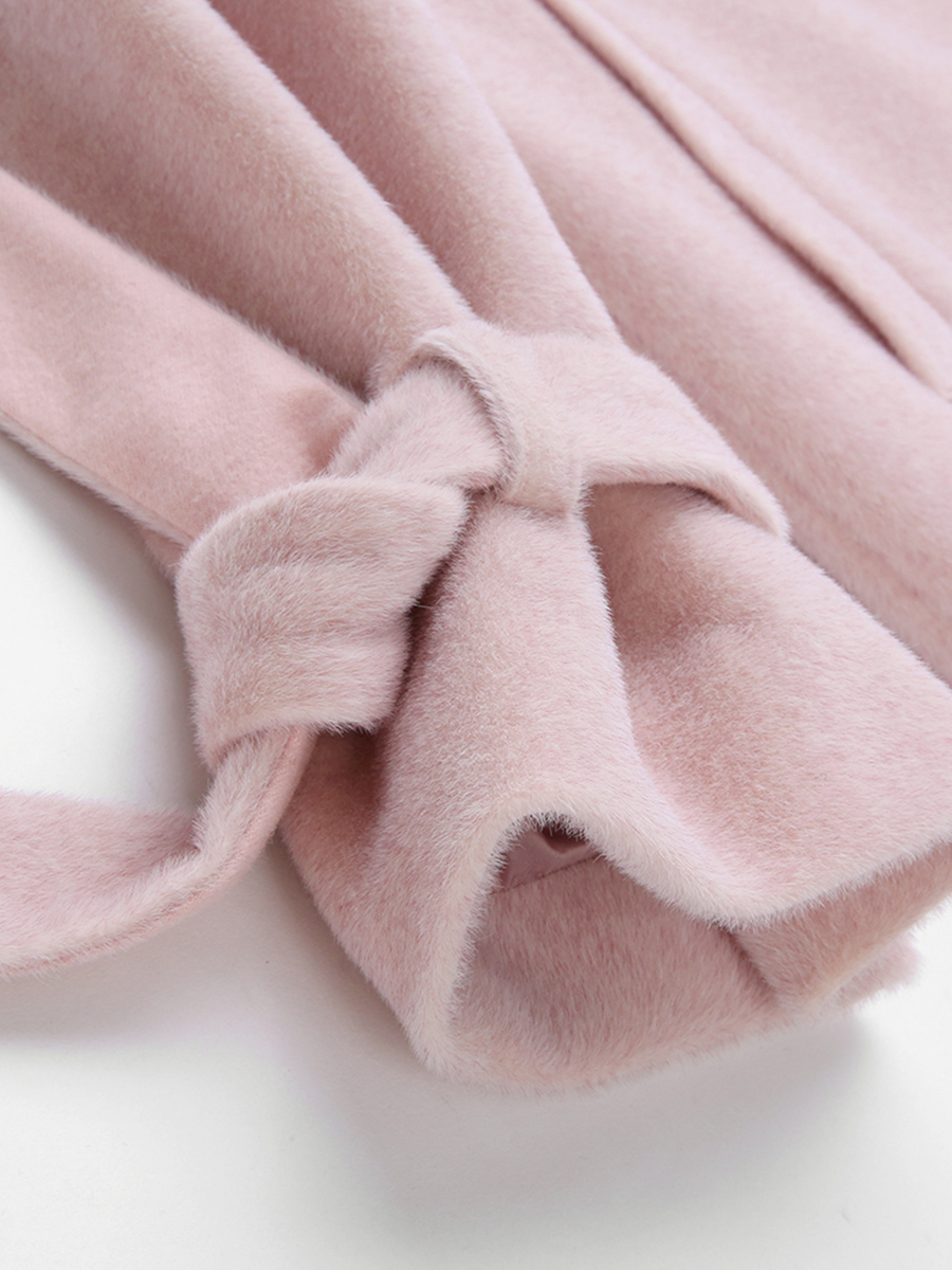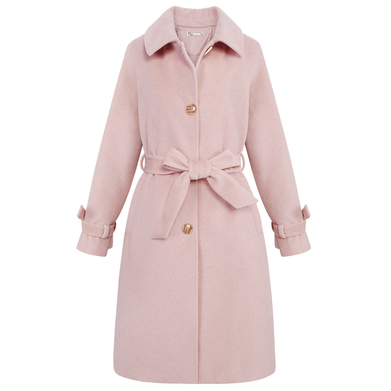 MG小象粉色過膝毛呢外套女中長款冬季新款學生蝴蝶結收腰呢子大衣