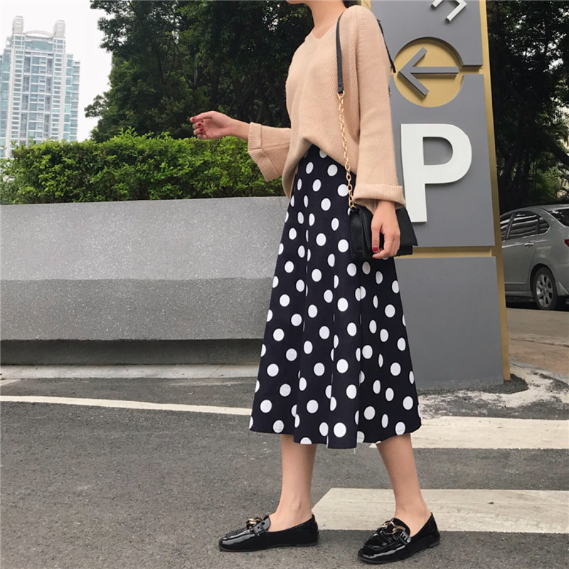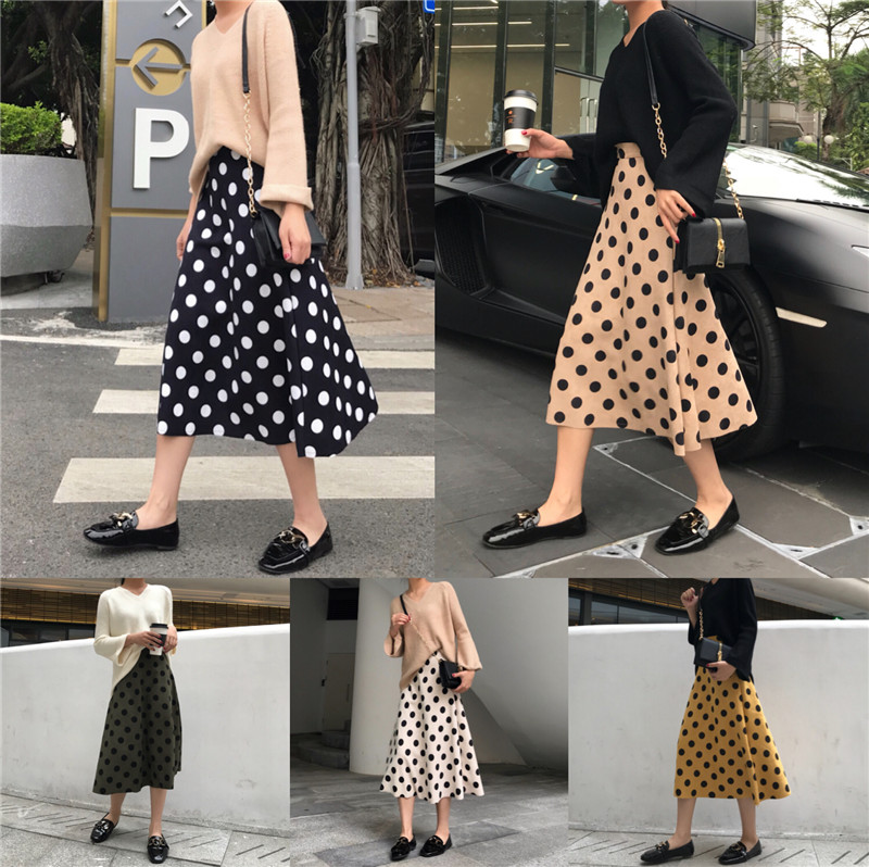 / 2018新款韓版秋冬季chic風女A字裙高腰百搭時尚中長款波點半身裙