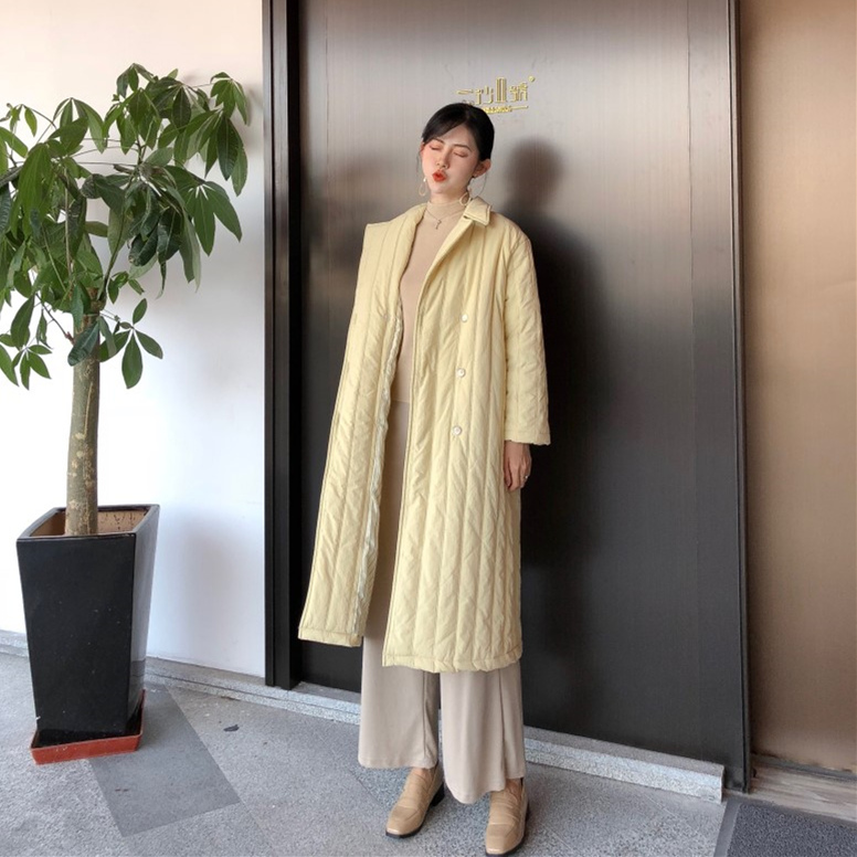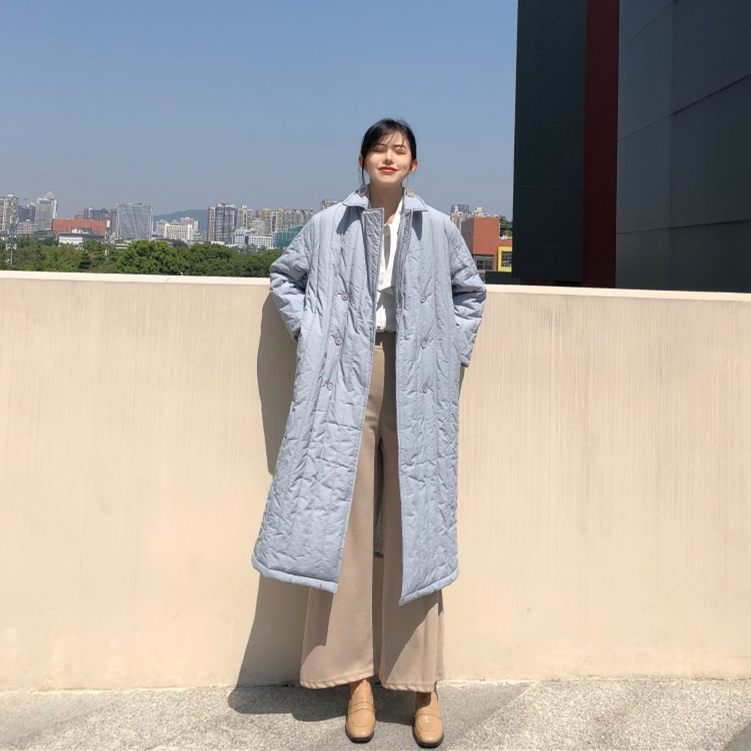 / 時尚港風外套冬季女2018新款百搭寬松雙排扣翻領中長款棉衣棉服女