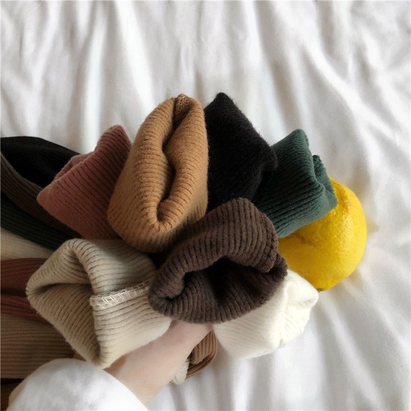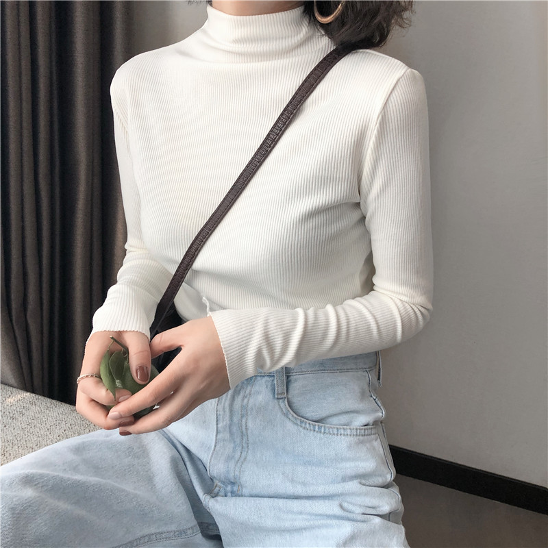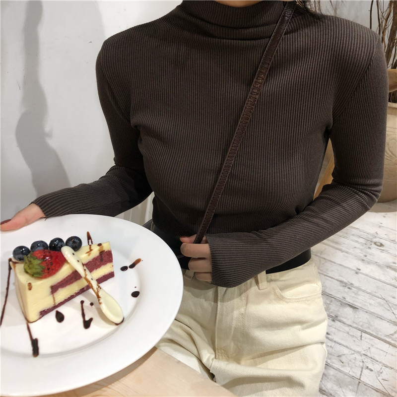 秋冬新款韓版chic時尚羅紋坑條磨毛顯瘦立領緊身內搭T恤打底上衣