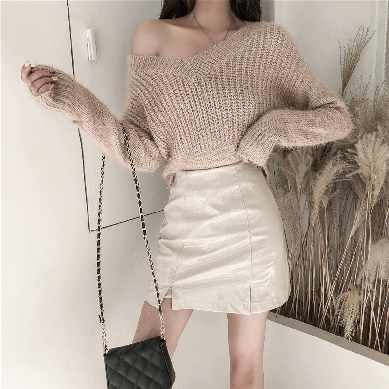 / 慵懶套頭毛衣女2018新款秋冬性感V領修身收腰短款兔毛打底針織衫