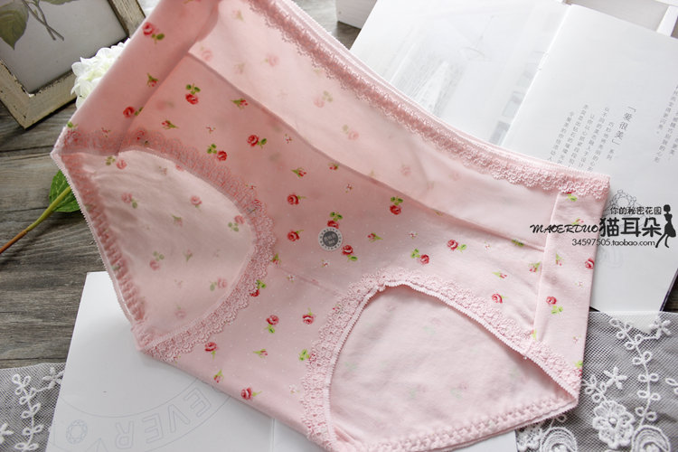 美好的時光 純棉碎花 棉質柔軟細膩 褲邊和腰邊都是同色系的蕾絲花邊鑲嵌 腰際前側朦朧的網紗,更顯腰瘦 中低腰包臀款式 后片的包臀效果特別贊,適合東方姑娘 基本款,推薦