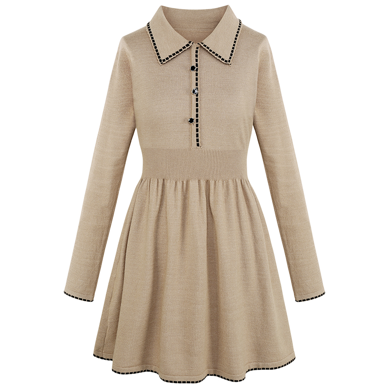 MG小象收腰針織連衣裙女長袖修身顯瘦秋冬新款中長款學生氣質裙子