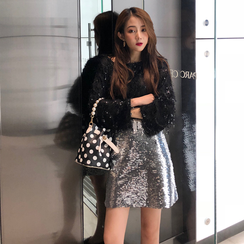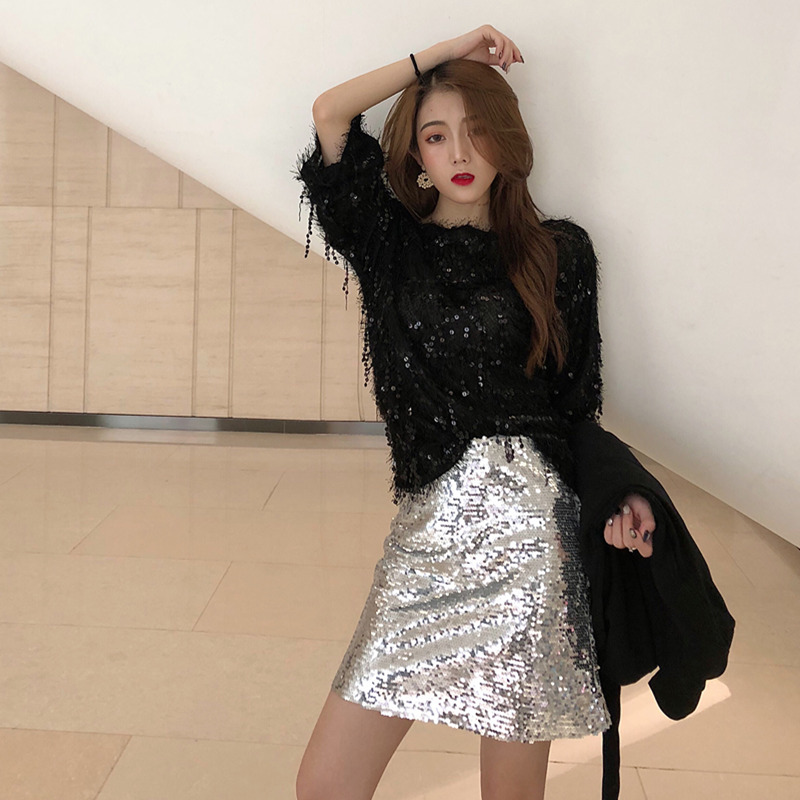 白上衣|黑上衣|亮片裙