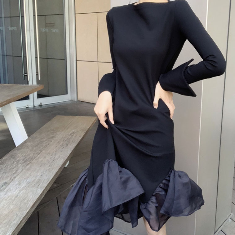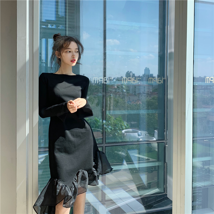 / 時尚復古港味裙子女秋冬2018新款氣質百搭魚尾長袖中長款連衣裙女