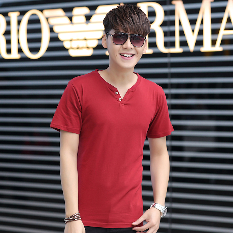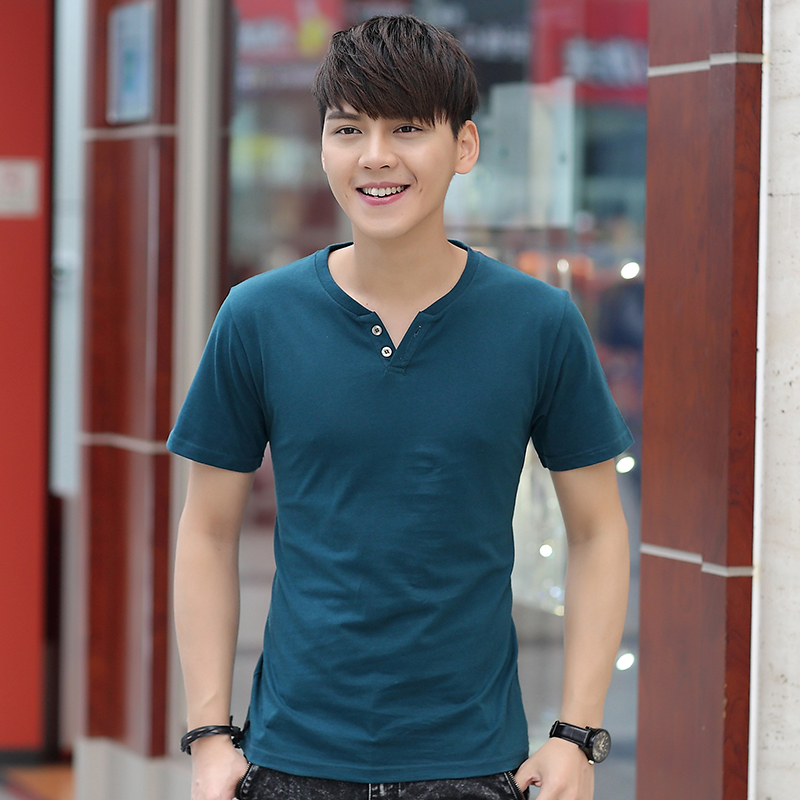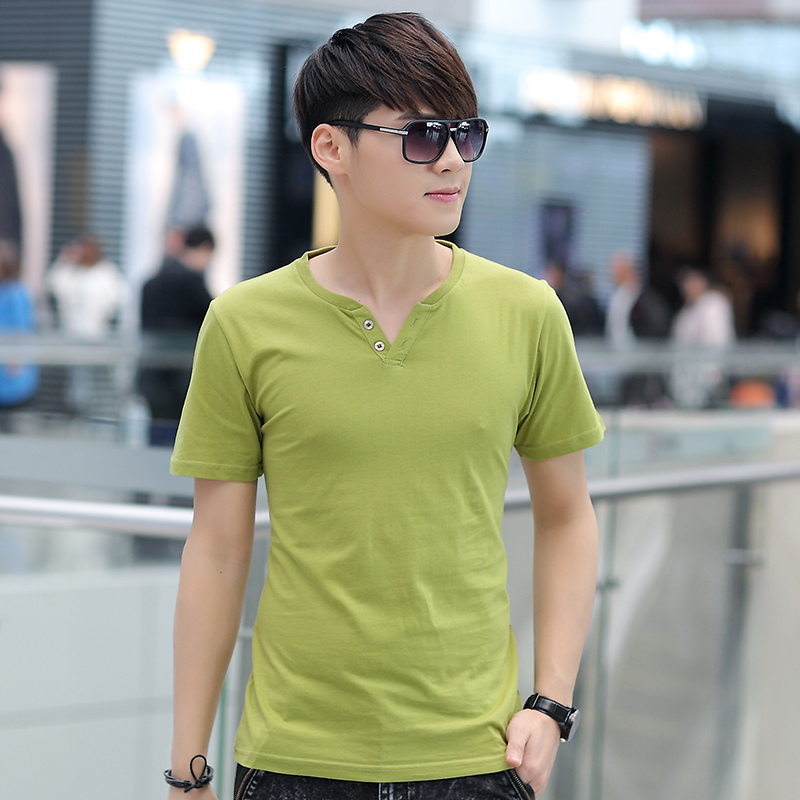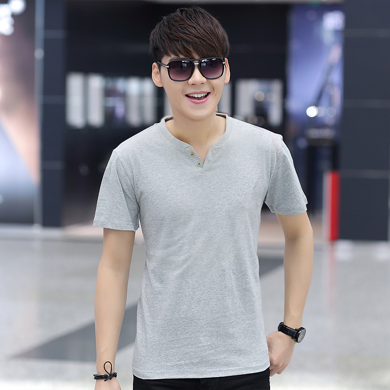 / 韓版修身潮男士短袖t恤純棉簡約春秋打底衫V領純色體恤上衣服
