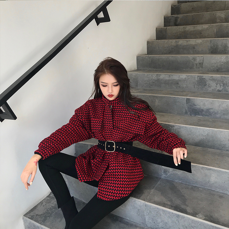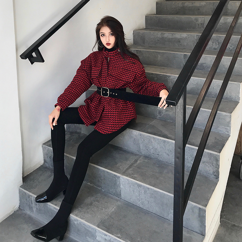 / 2018秋冬新款韓版寬松加厚保暖時尚格子系帶氣質中長款chic外套女