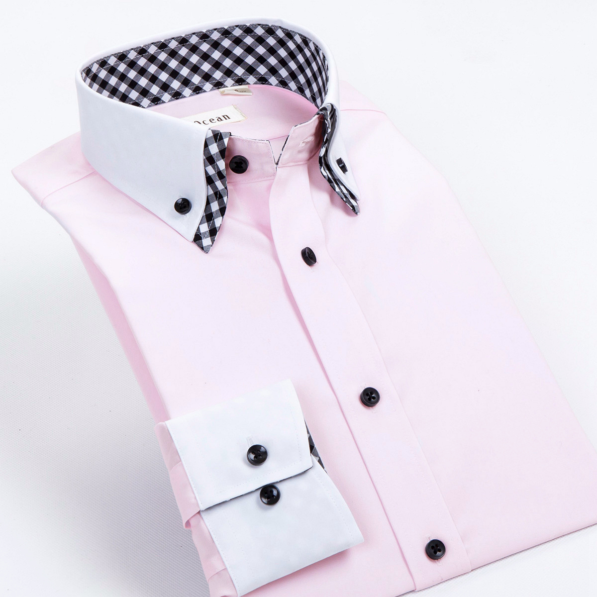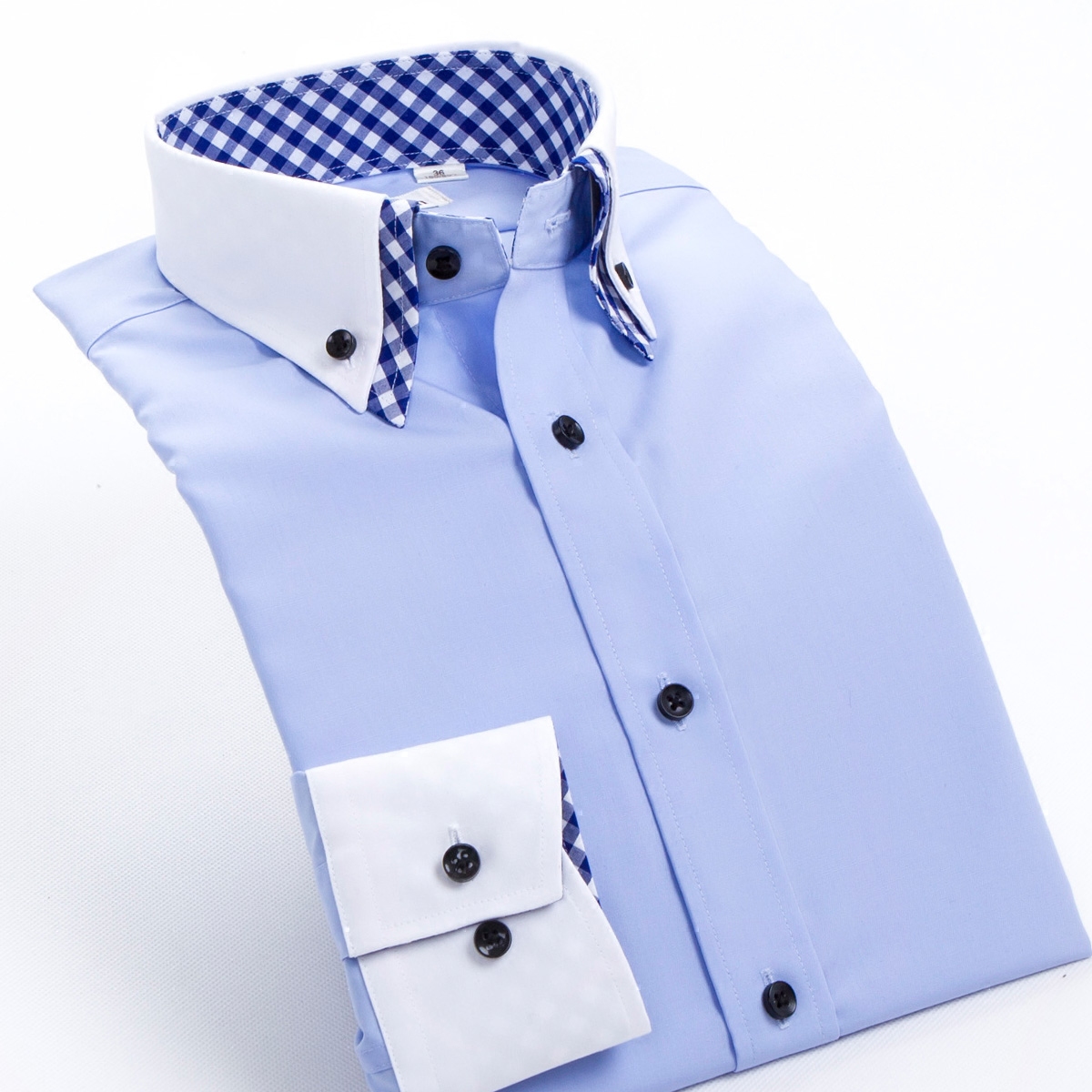 / 男士長袖寸衣韓版修身純棉商務藍色扣領棉免燙寸衫休閑襯衫秋季男