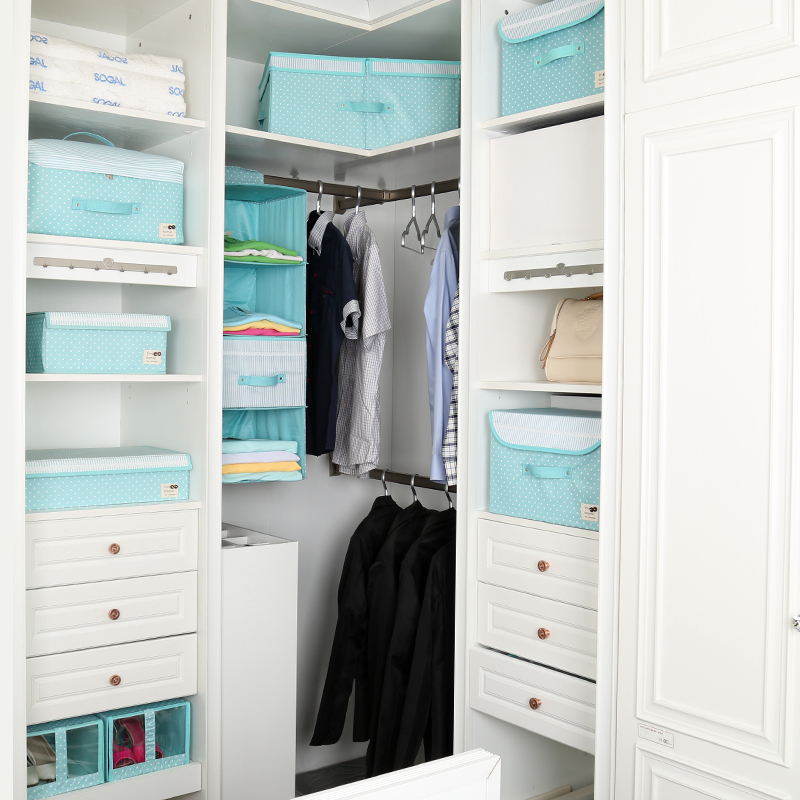 天縱薄荷綠布藝收納套裝 衣服收納箱被子整理袋 棉被儲物箱百納盒