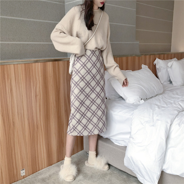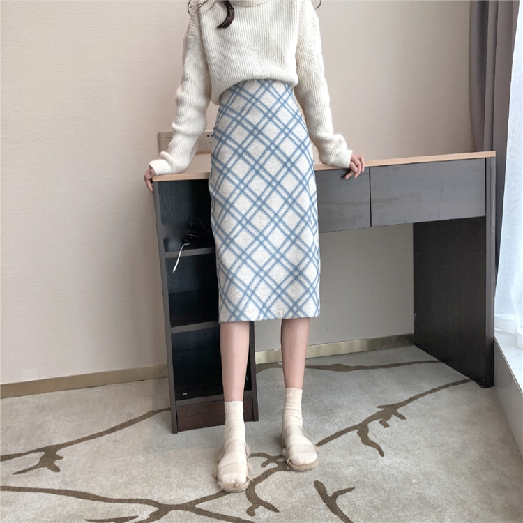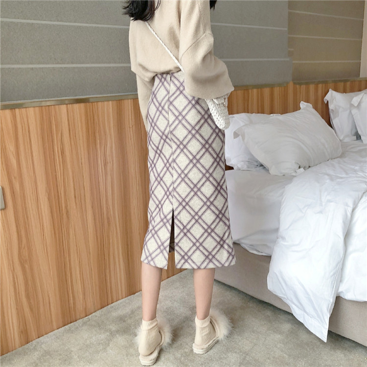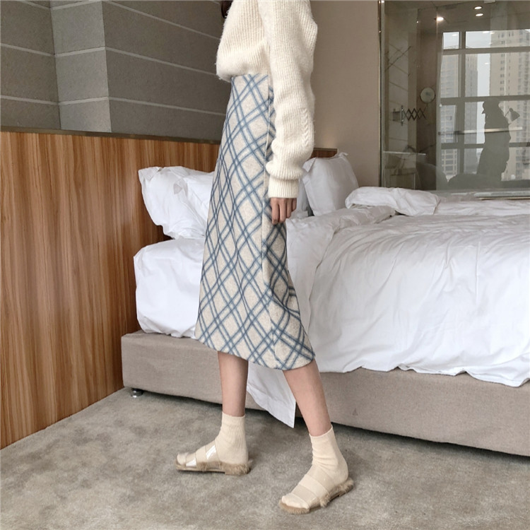/ 韓國秋冬chic裙子女百搭氣質新款顯瘦高腰格子呢子中長款半身裙潮