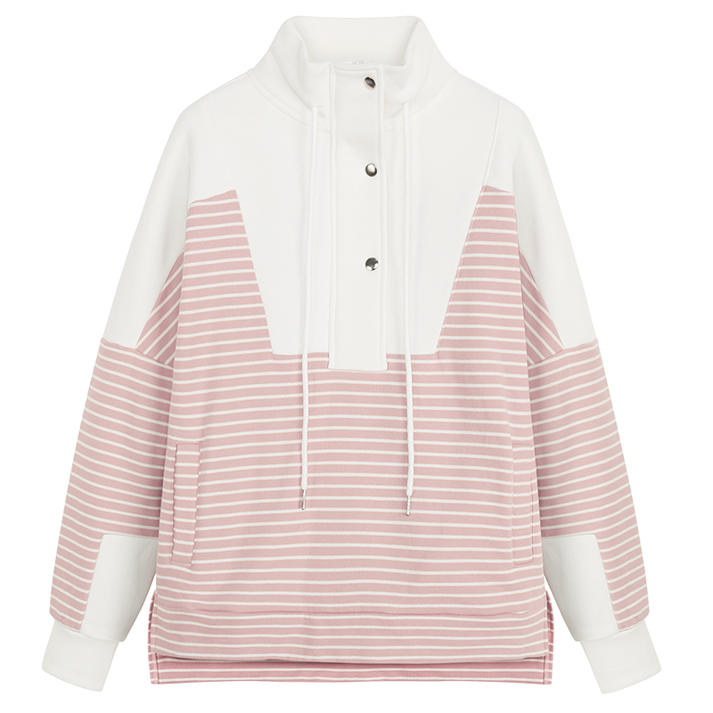 MG小象粉色條紋衛衣女個性寬松2018秋冬新款套頭休閑學生拼接上衣