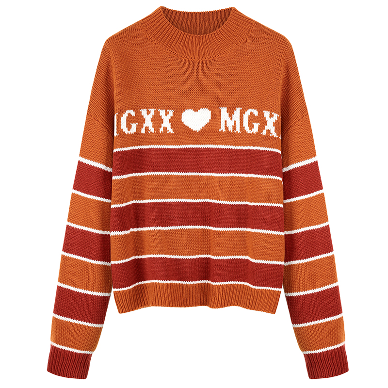 / MG小象條紋chic毛衣女長袖寬松秋冬2018新款慵懶風針織套頭上衣潮