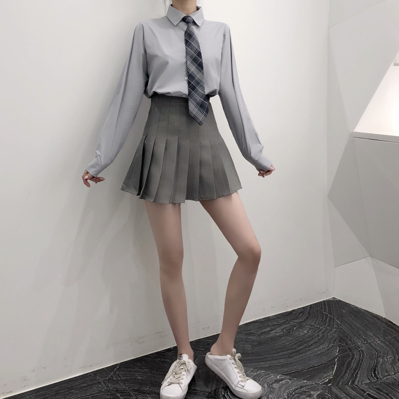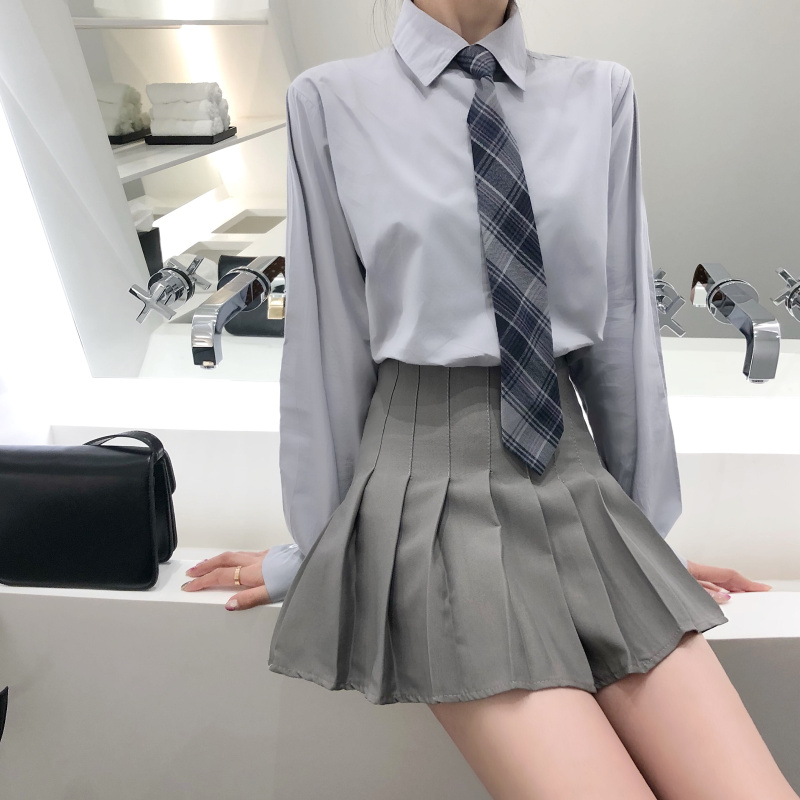 襯衫+領帶|百褶裙