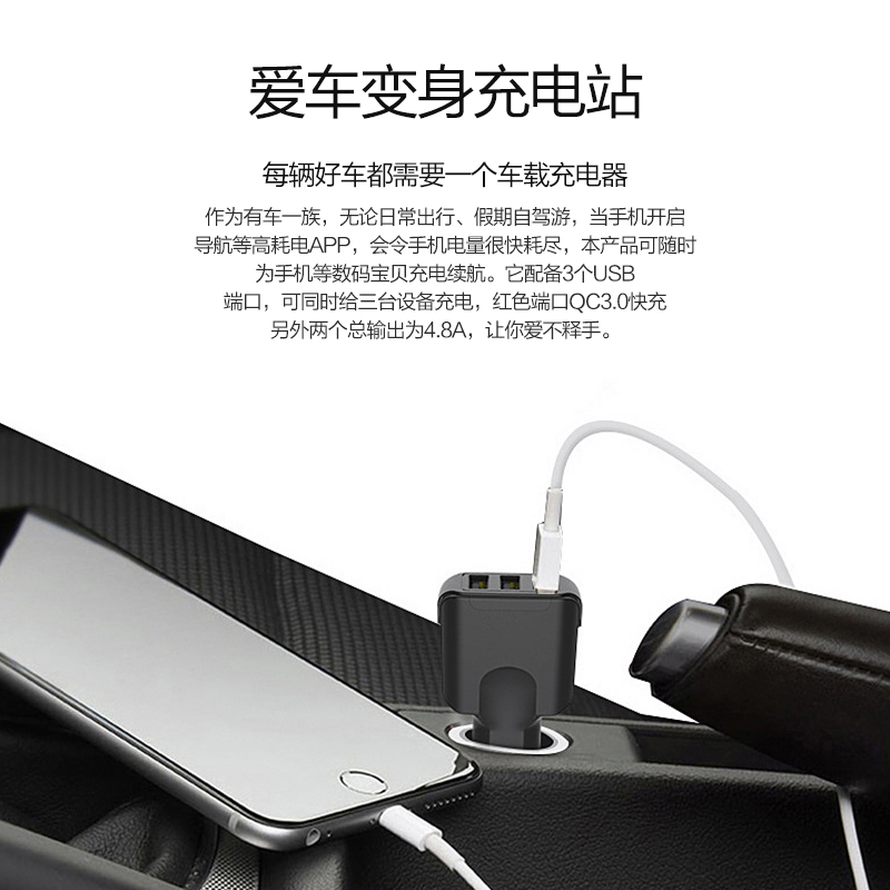 車載充電器汽車點煙手機一拖三USB接口多功能插頭蘋果7通用延長線