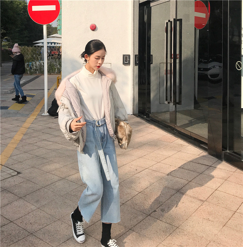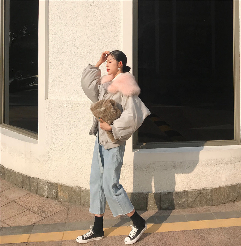 2018秋冬新款韓版時尚大衣保暖寬松chic氣質女裝毛領加厚棉服外套