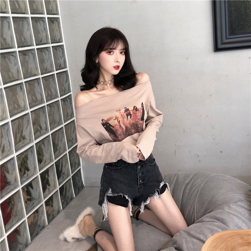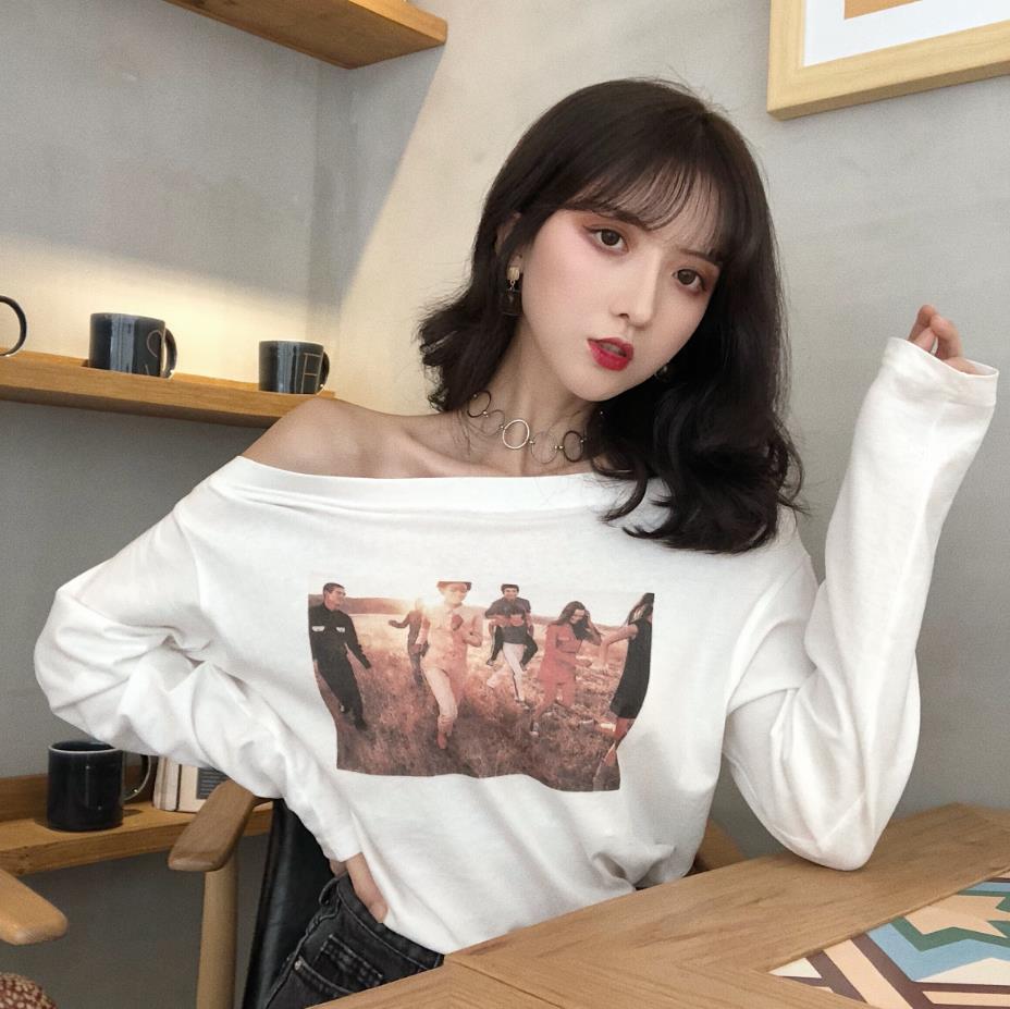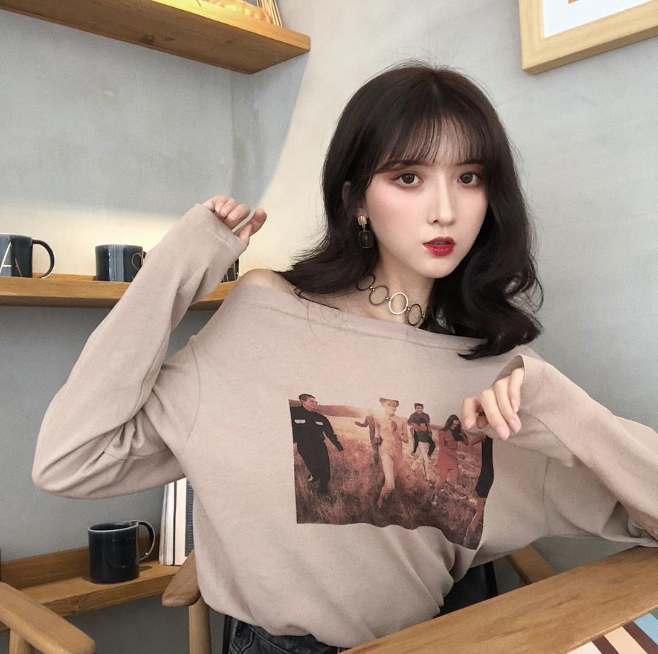 / 秋季新款百搭小清新學生復古chic韓版上衣女氣質印花打底長袖T恤