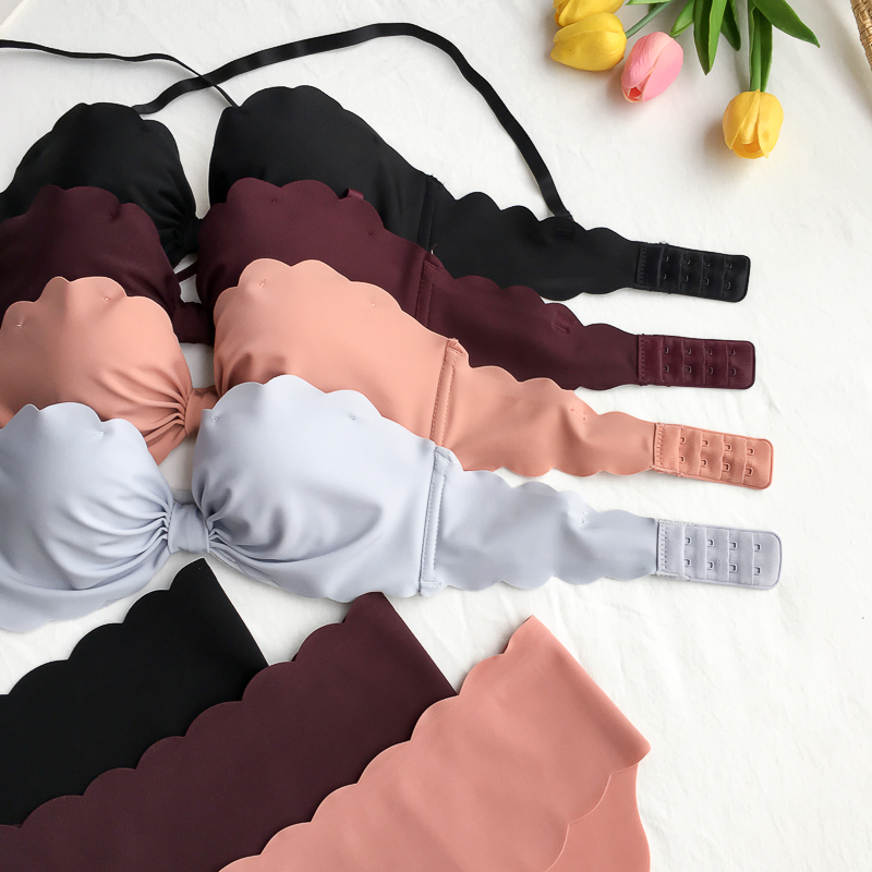 / 2018新款蝴蝶結少女聚攏舒適內衣+性感無痕波浪紋內褲文胸套裝潮