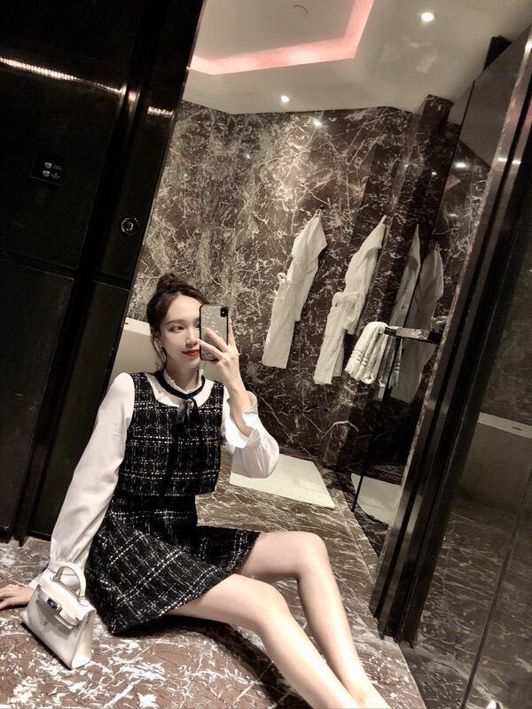 / 2018秋裝chic新款顯瘦氣質小香風長袖假兩件裙子呢子套裝連衣裙女
