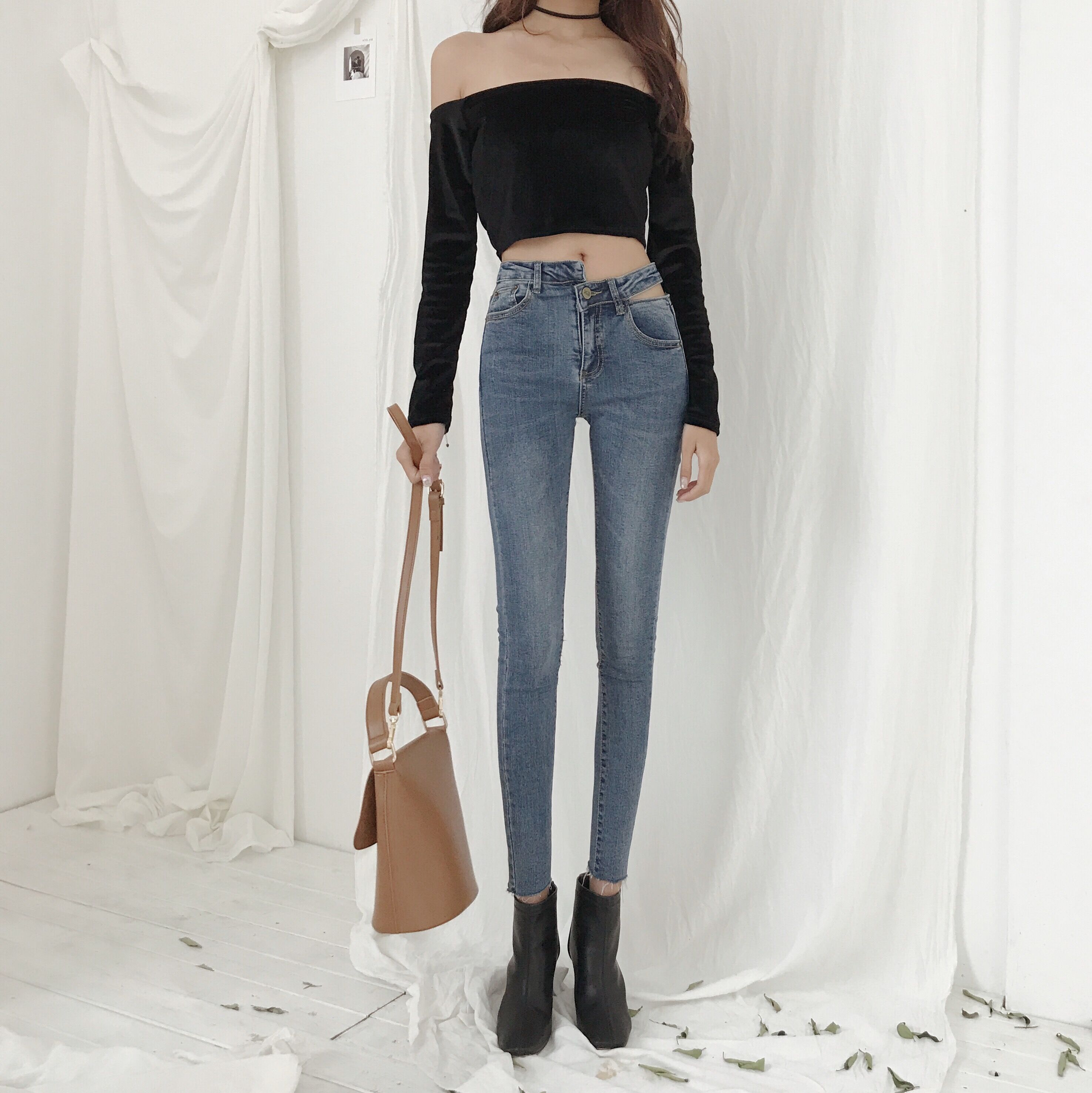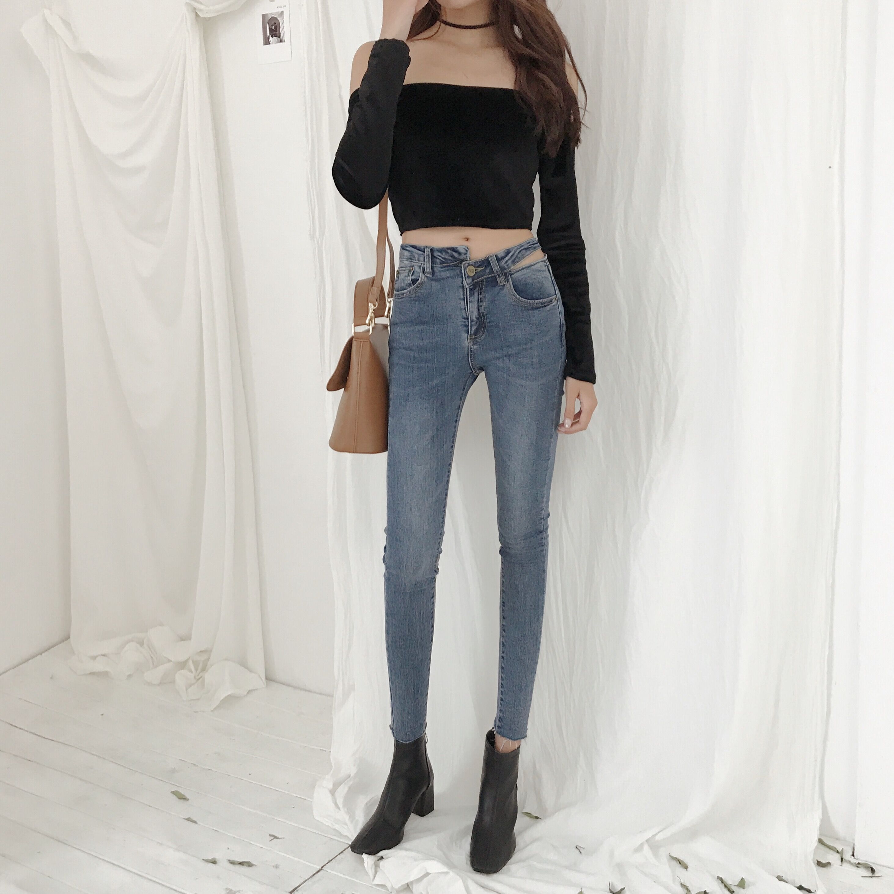 2018新款韓版不規則牛仔褲高腰時尚九分學生褲子百搭顯瘦鉛筆褲女