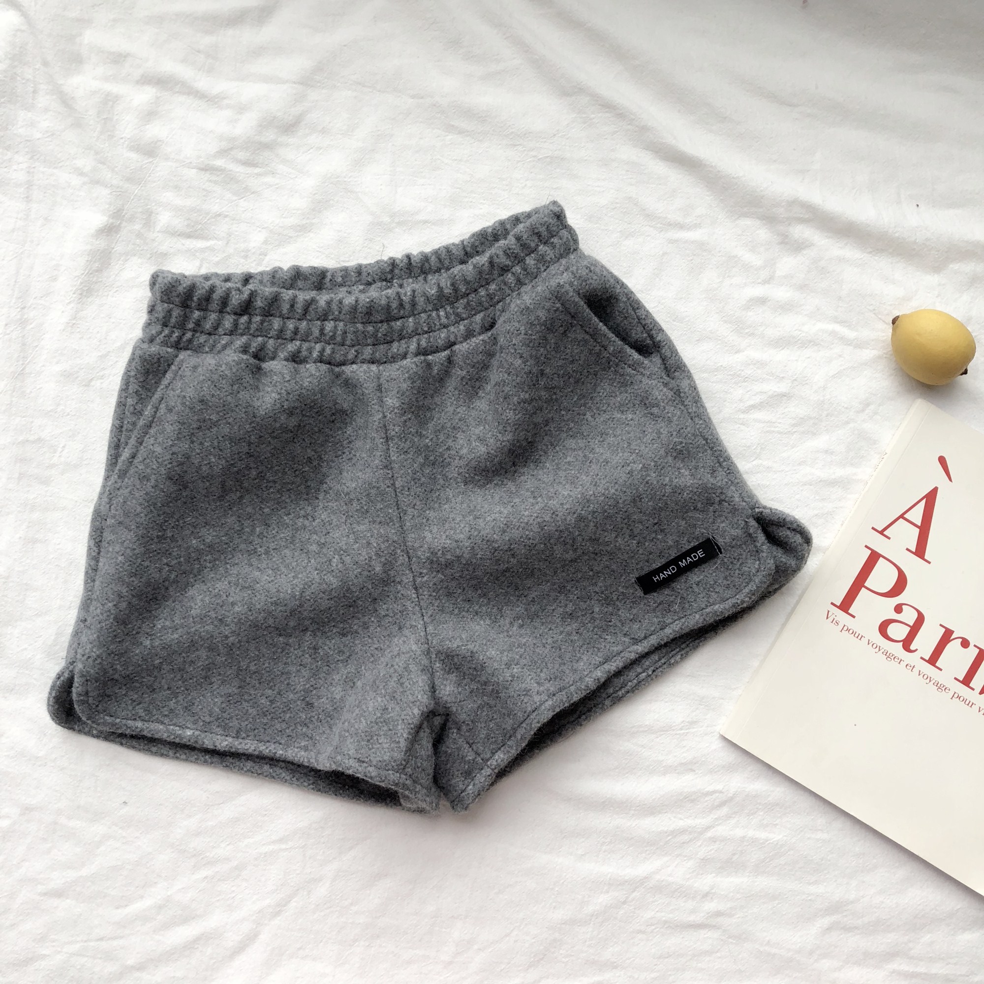 褲子女新款韓版百搭加厚毛呢寬松短褲松緊腰褲高腰直筒褲闊腿褲潮