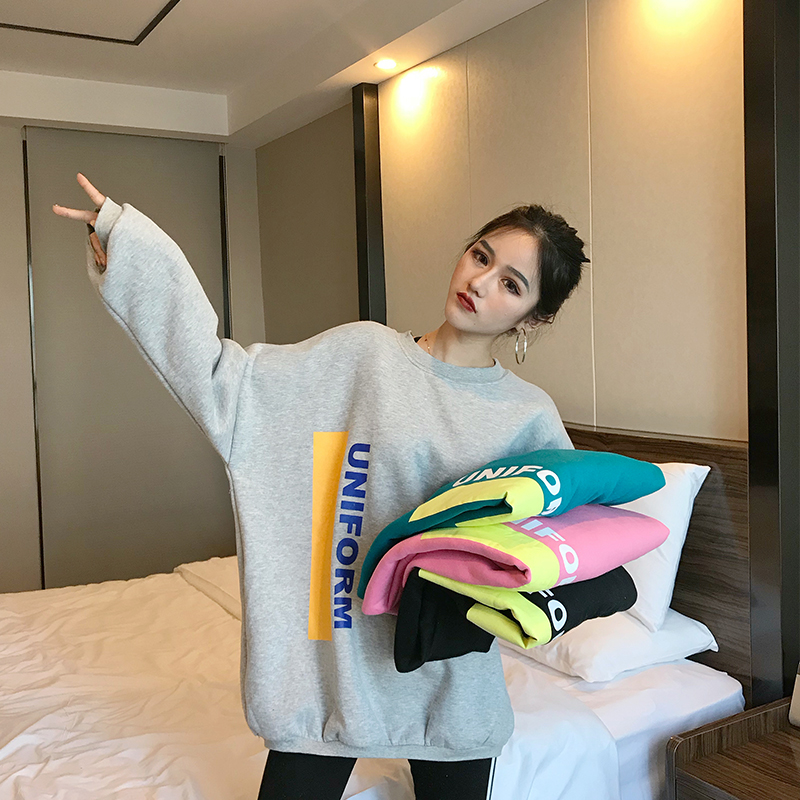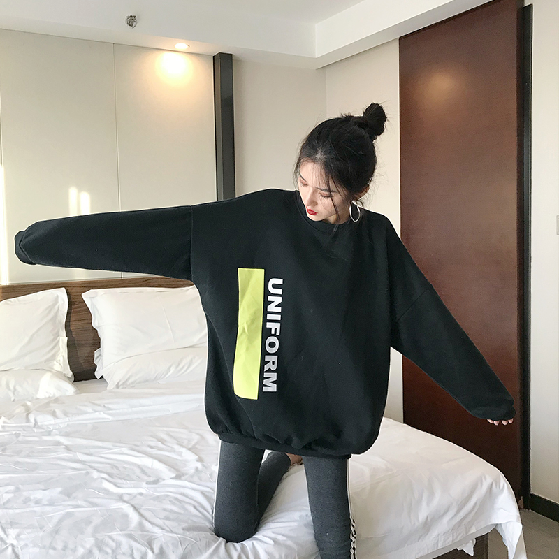 2018秋冬新款韓版小清新復古chic時尚上衣女學生寬松加厚百搭衛衣