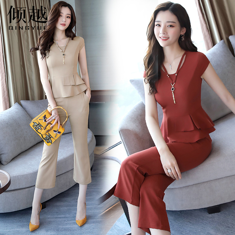 時尚套裝女夏季新款2017女裝氣質顯瘦小香風名媛七分闊腿褲兩件套