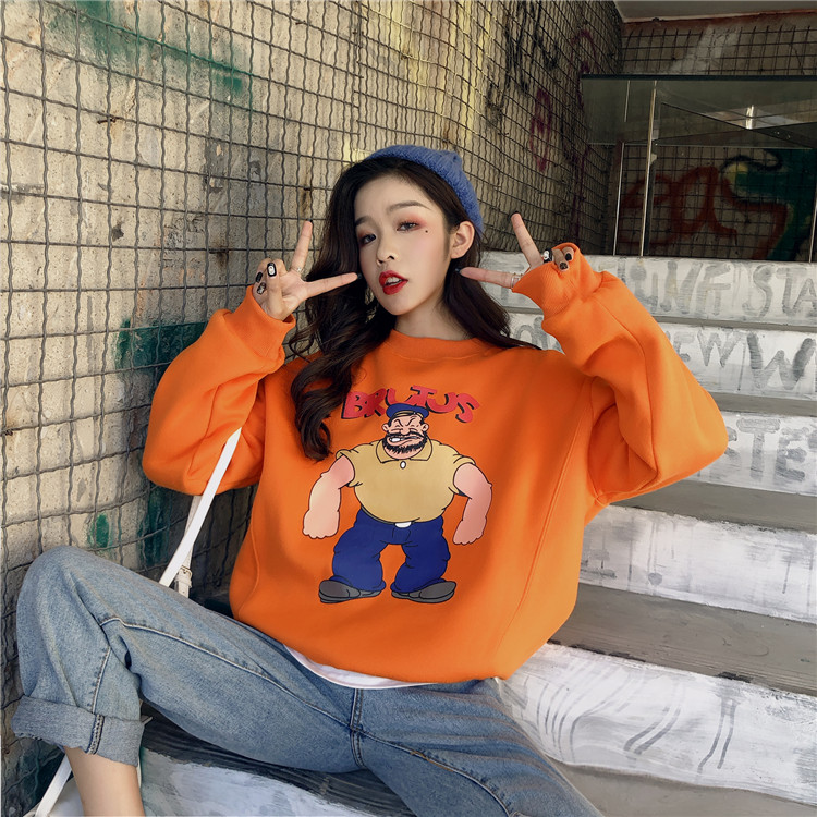 港風加絨ins同款大力水手卡通印花圓領衛衣