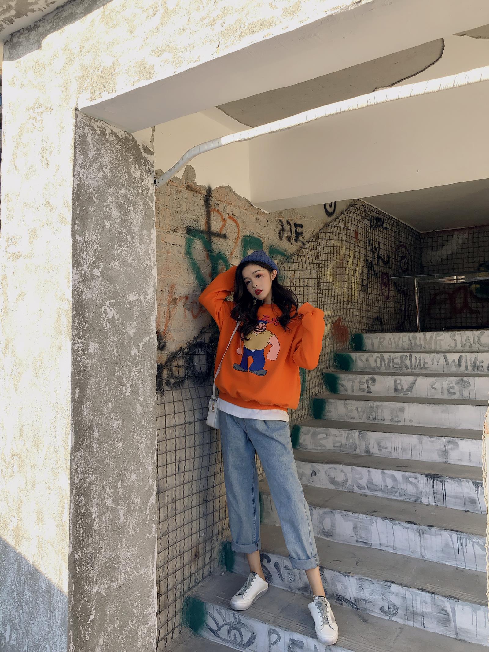 / 港風加絨ins同款大力水手卡通印花圓領衛衣