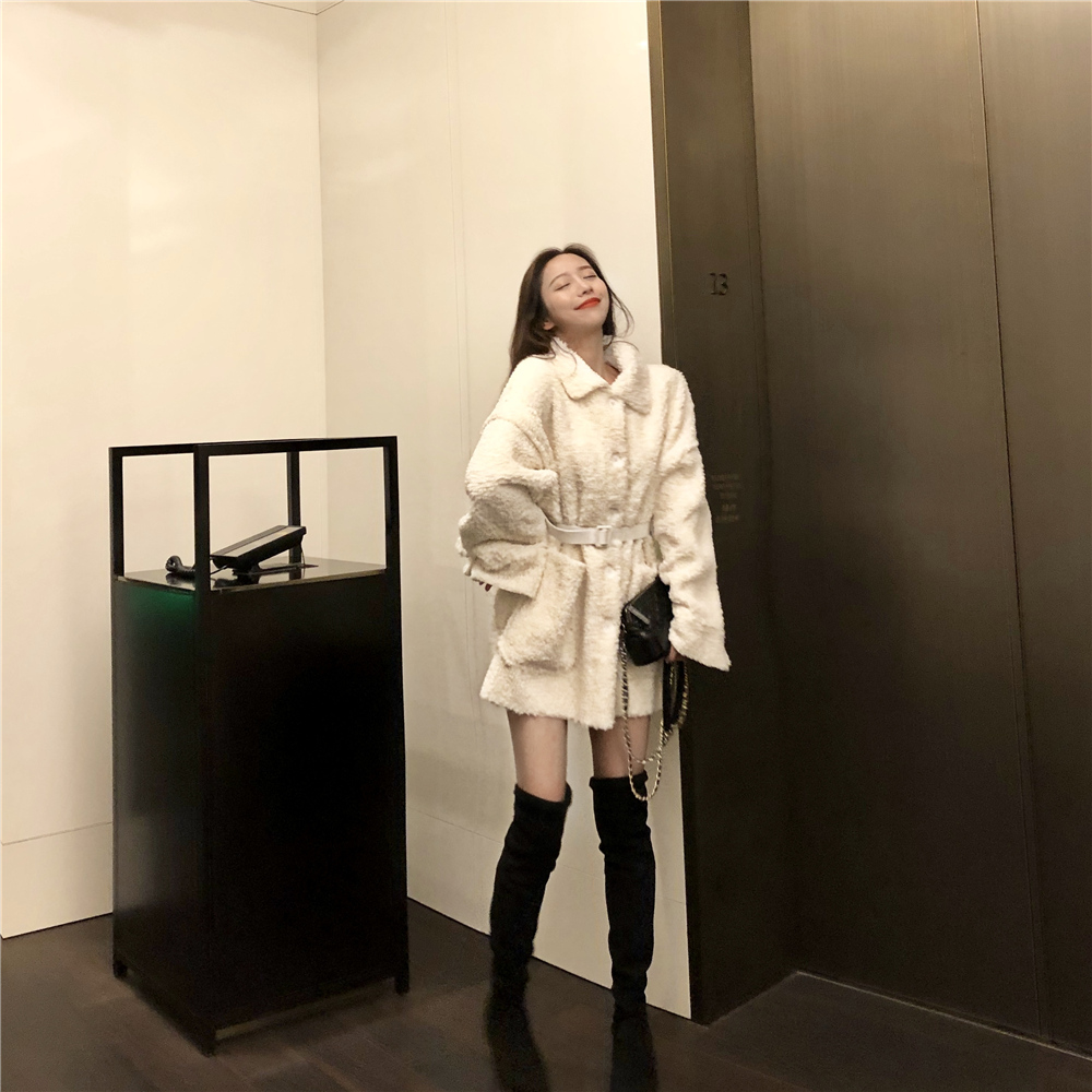 毛呢外套女冬季大衣女新款2018韓版時尚白色毛絨加厚中長款上衣潮