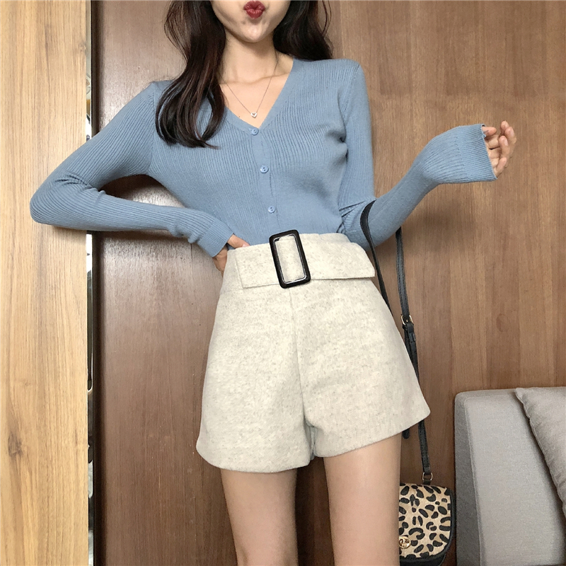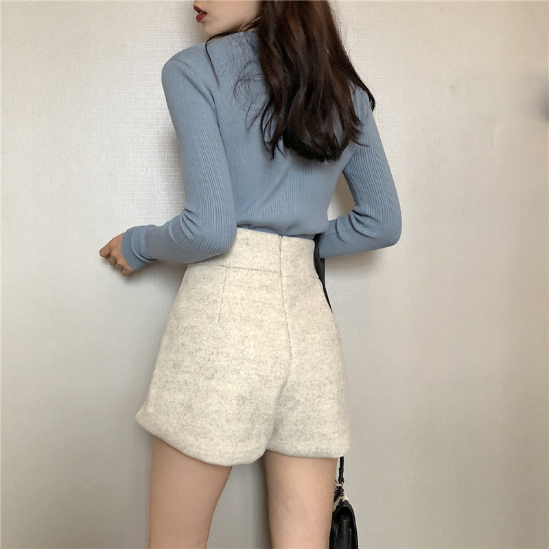 毛呢短褲女秋冬2018新款韓版百搭a字外穿高腰顯瘦褲加厚闊腿靴褲