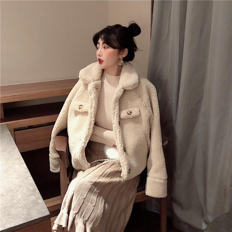 / 娃娃領chic毛茸茸外套秋冬短款時尚套裝復古顯瘦百褶裙子兩件套女