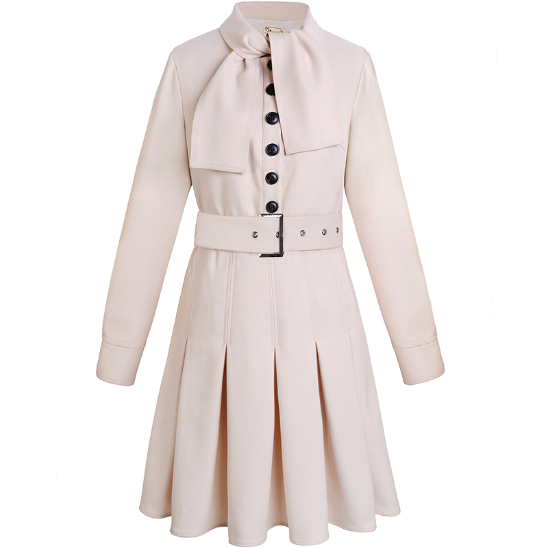 MG小象收腰連衣裙女裝寬松蝴蝶結秋冬新款中長款甜美氣質chic裙子