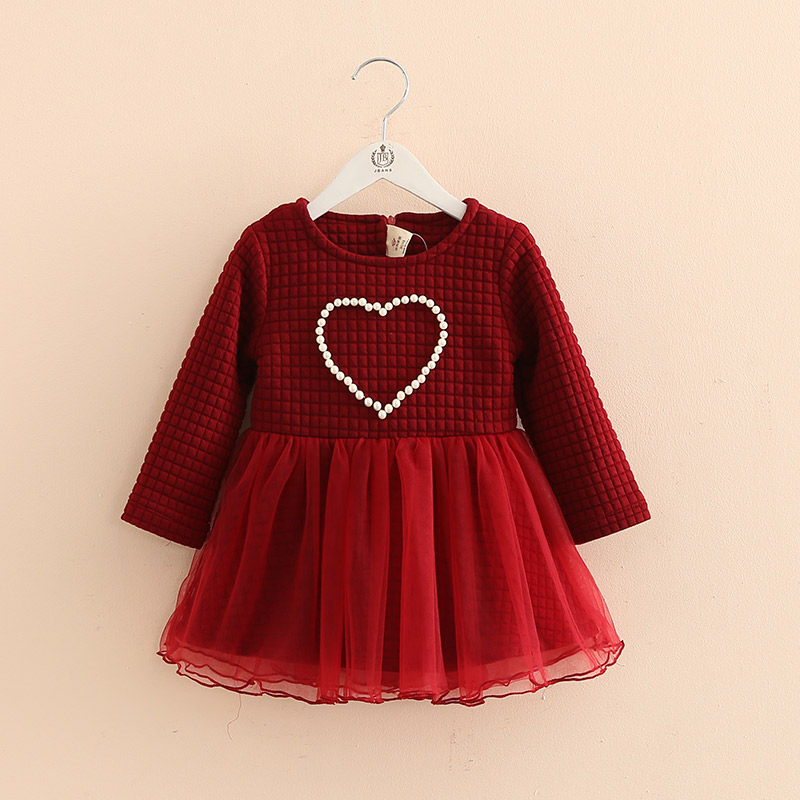 寶寶珍珠愛心連衣裙 秋冬裝新款女童童裝兒童長袖裙子qz-3030