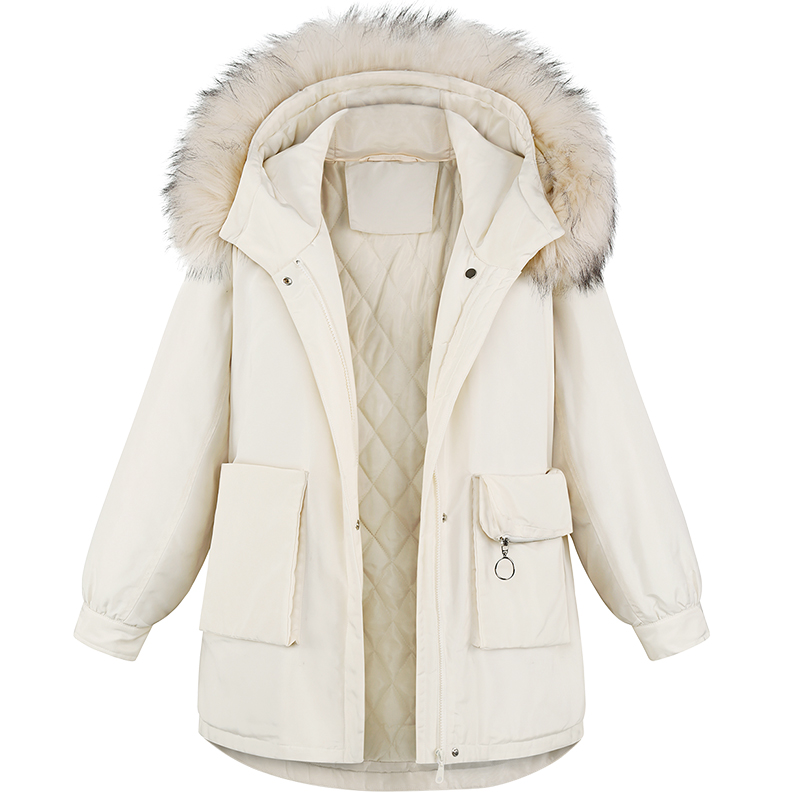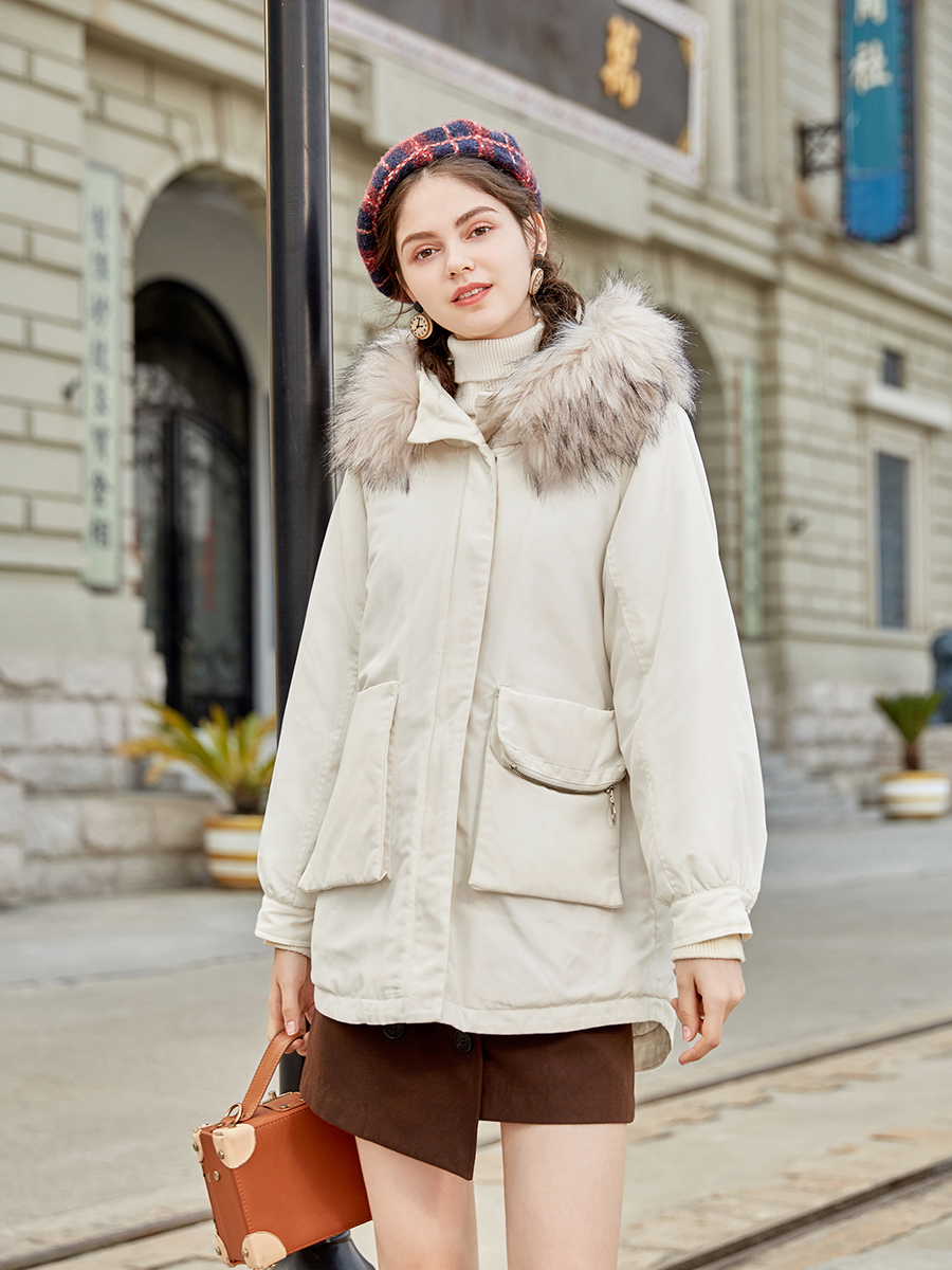 MG小象休閑毛領棉衣女寬松加厚冬裝2018新款學生小個子杏色棉服潮