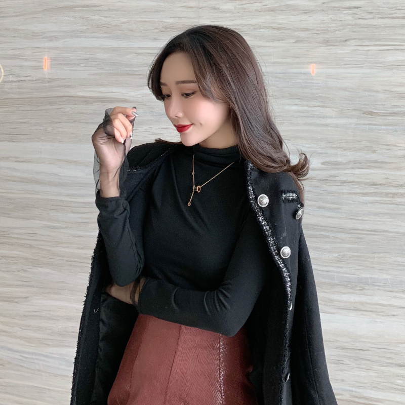 港味復古秋冬2018新款氣質百搭高領內搭純色長袖套頭打底衫女上衣