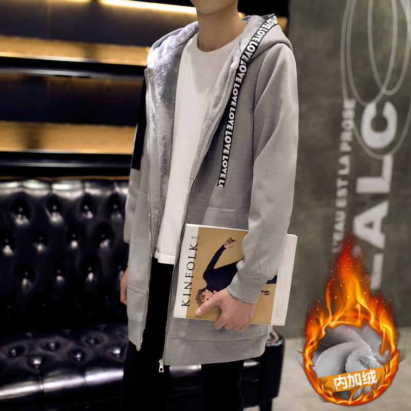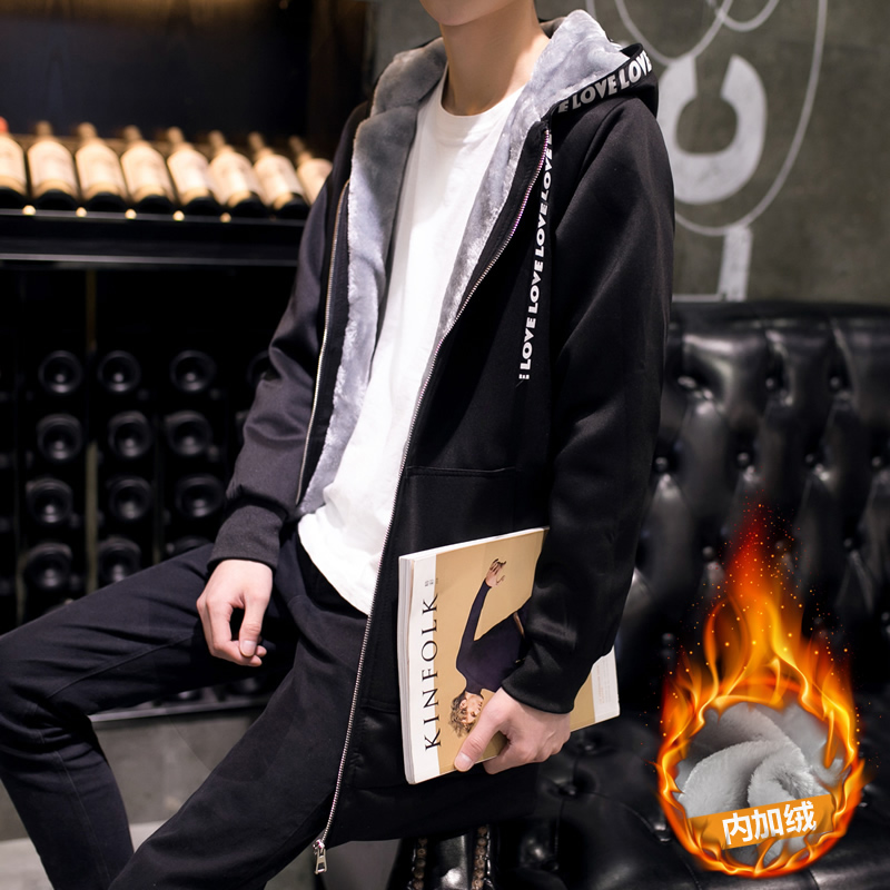 冬季風衣男中長款加絨大衣青年風衣修身韓版大碼外套男