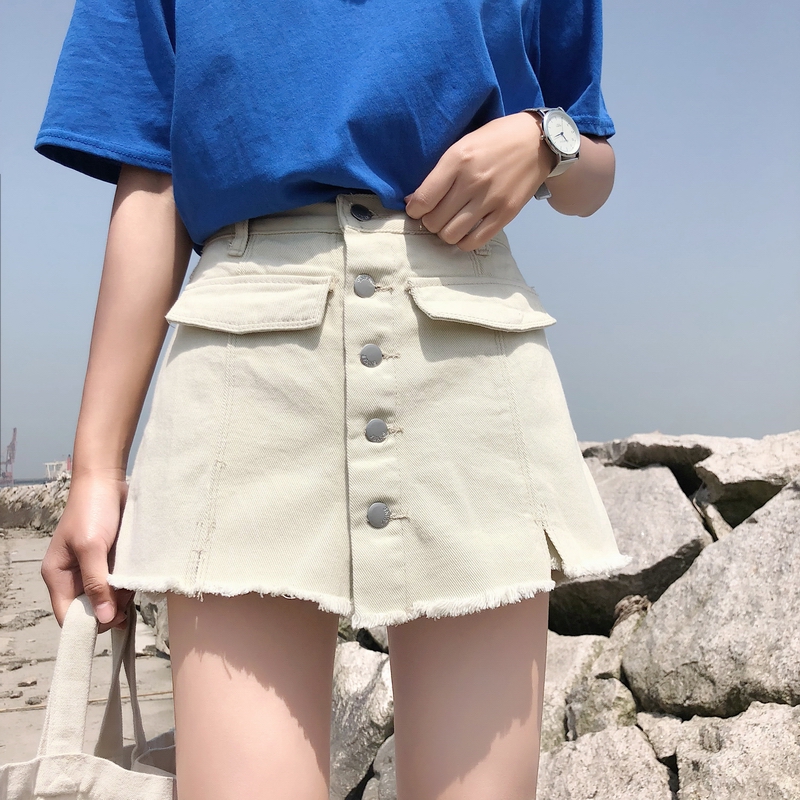 2018新款韓版假兩件寬松高腰顯瘦A字裙褲裙闊腿百搭牛仔短褲女夏