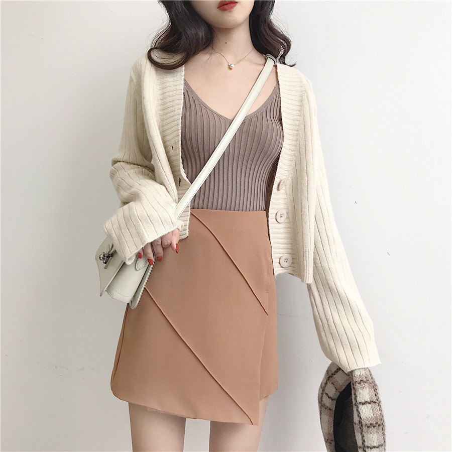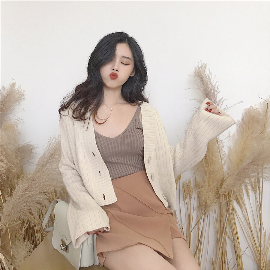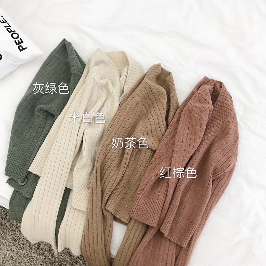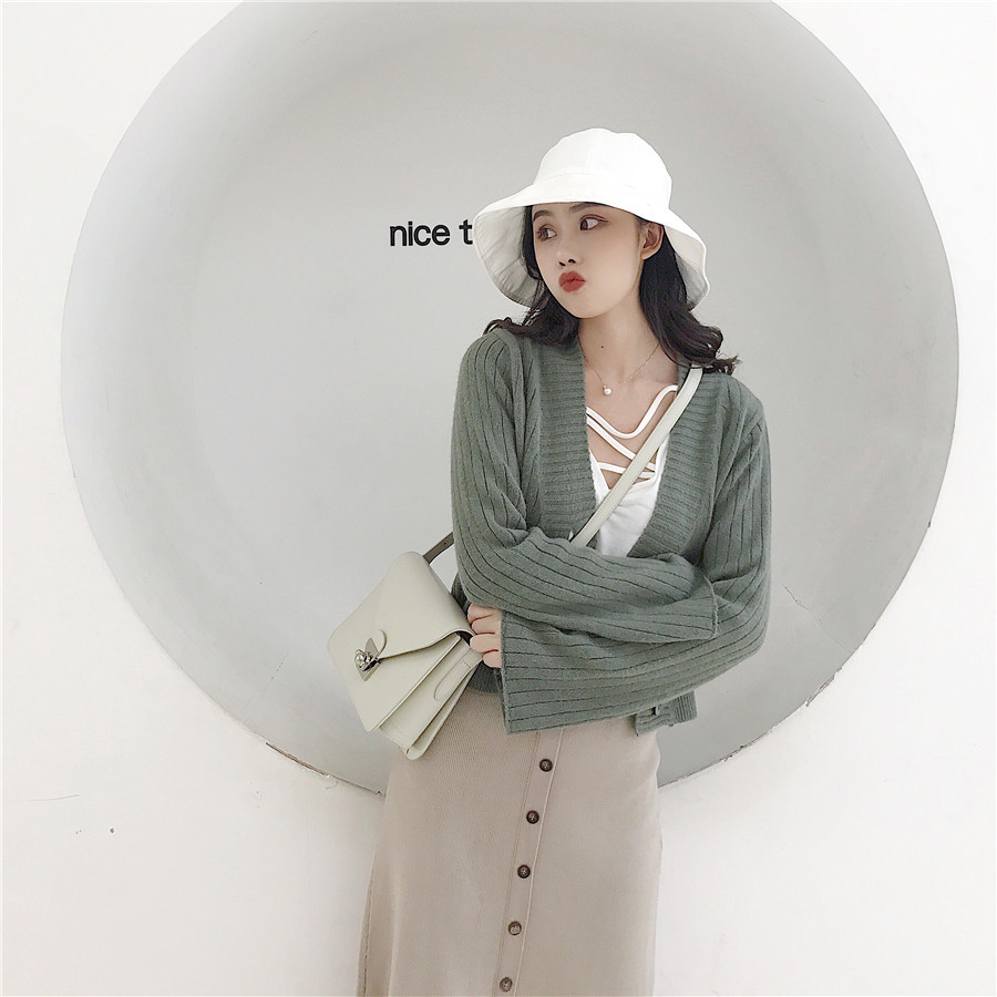 / 新款韓版秋裝兔毛軟糯溫柔色系短外套喇叭袖慵懶超美短開衫毛衣女
