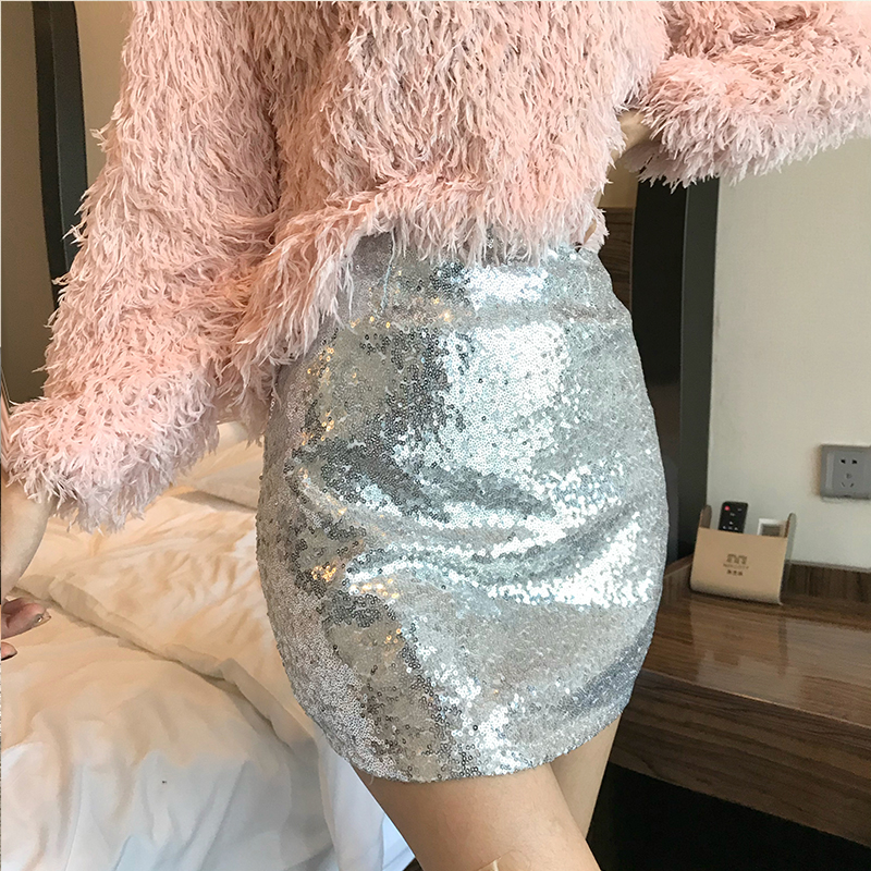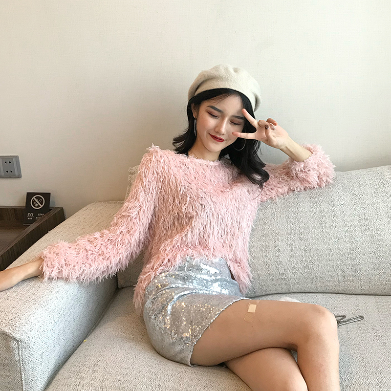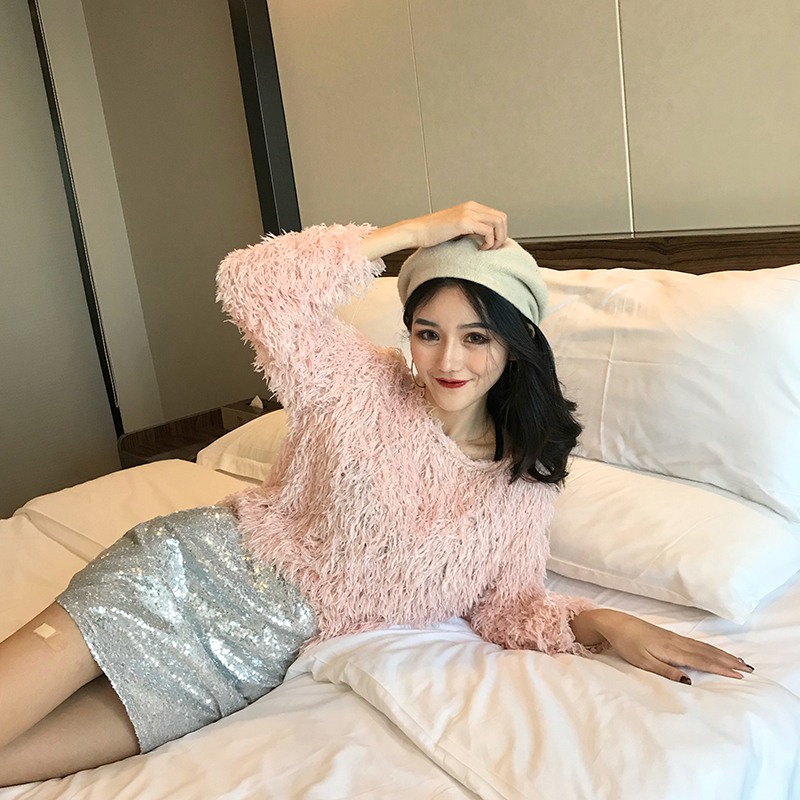粉色毛衣|銀色短裙