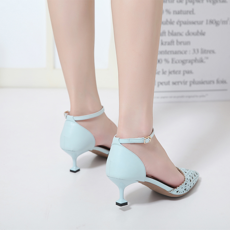涼鞋女夏季新款韓版百搭一字扣中空包頭鏤空細跟中跟高跟女鞋