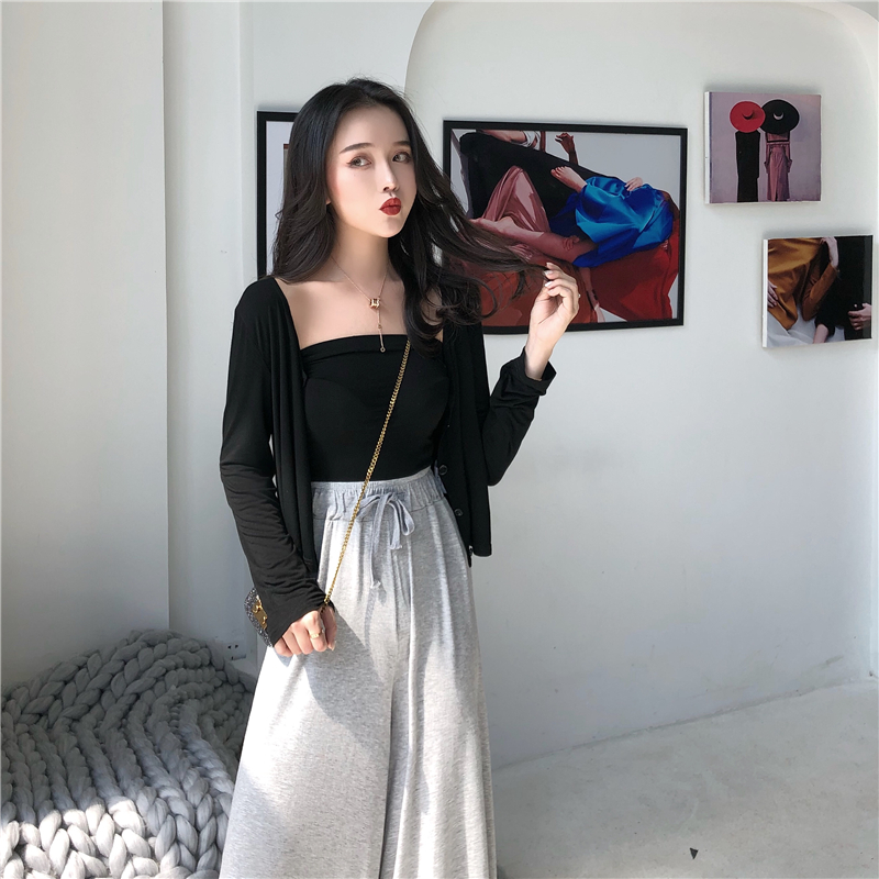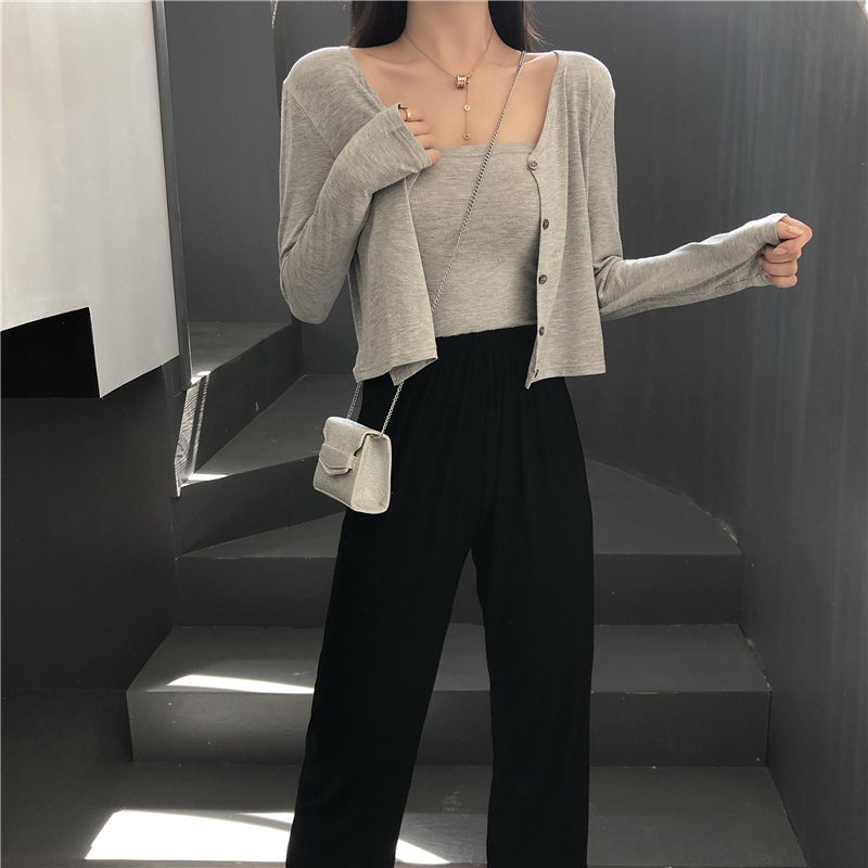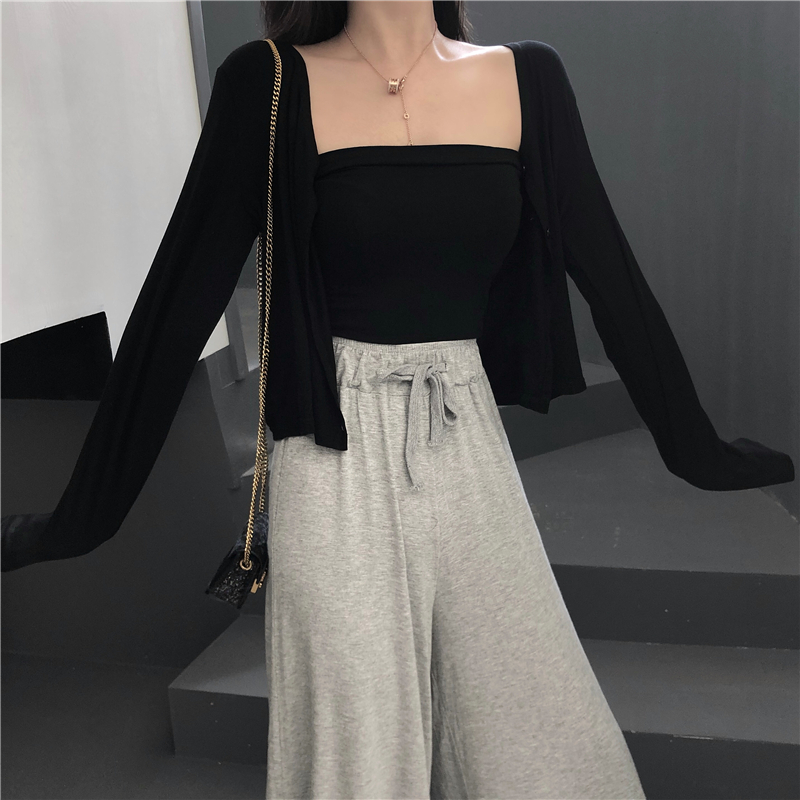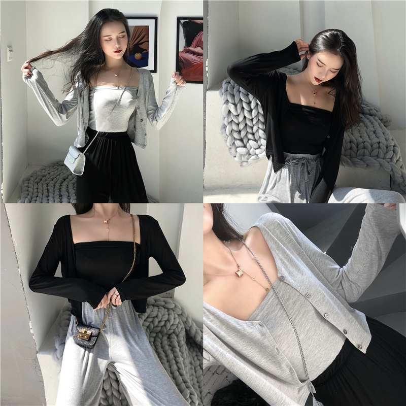 / 秋裝新款韓版港風時尚套裝短款抹胸長袖披肩開衫短外套女兩件套潮