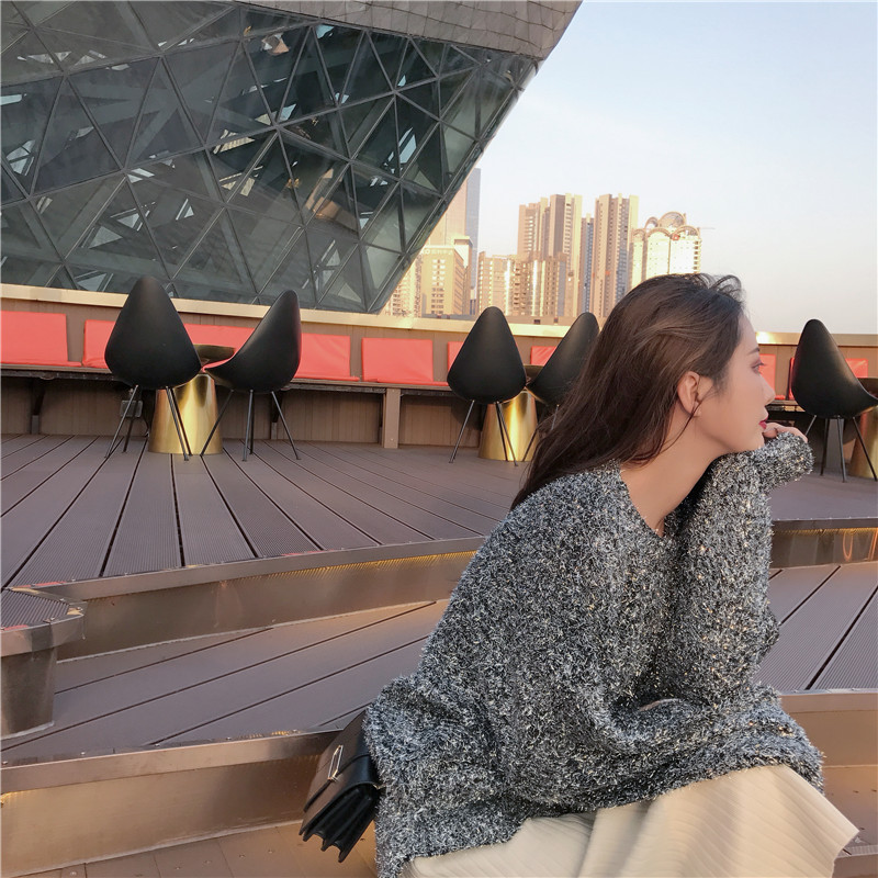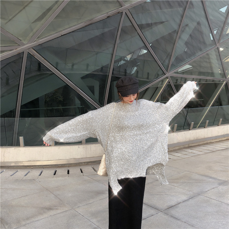 / 復古氣質中長款上衣女慵懶風時尚百搭chic秋季不規則寬松閃閃毛衣