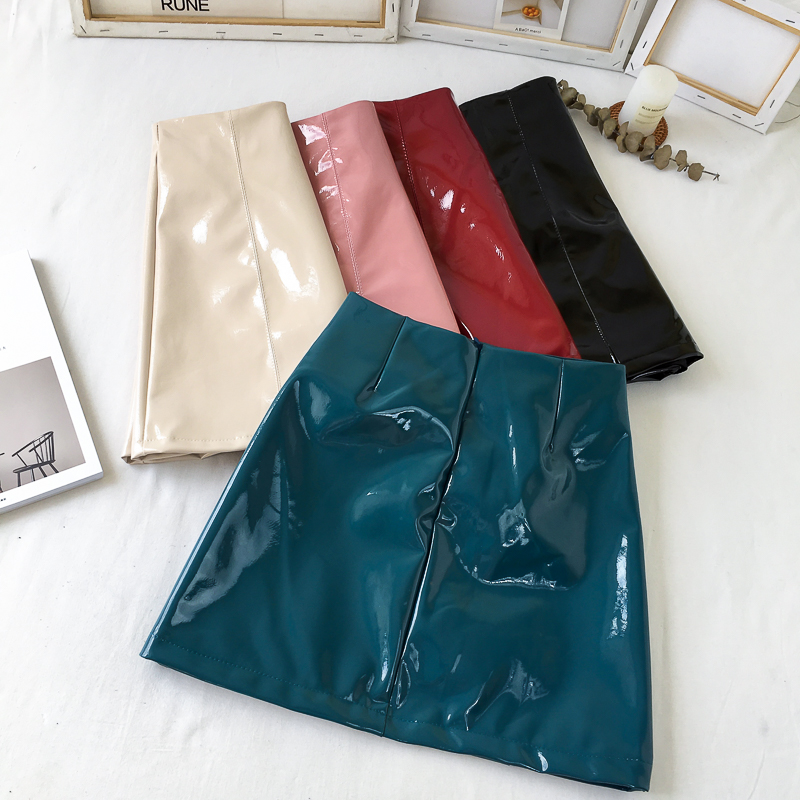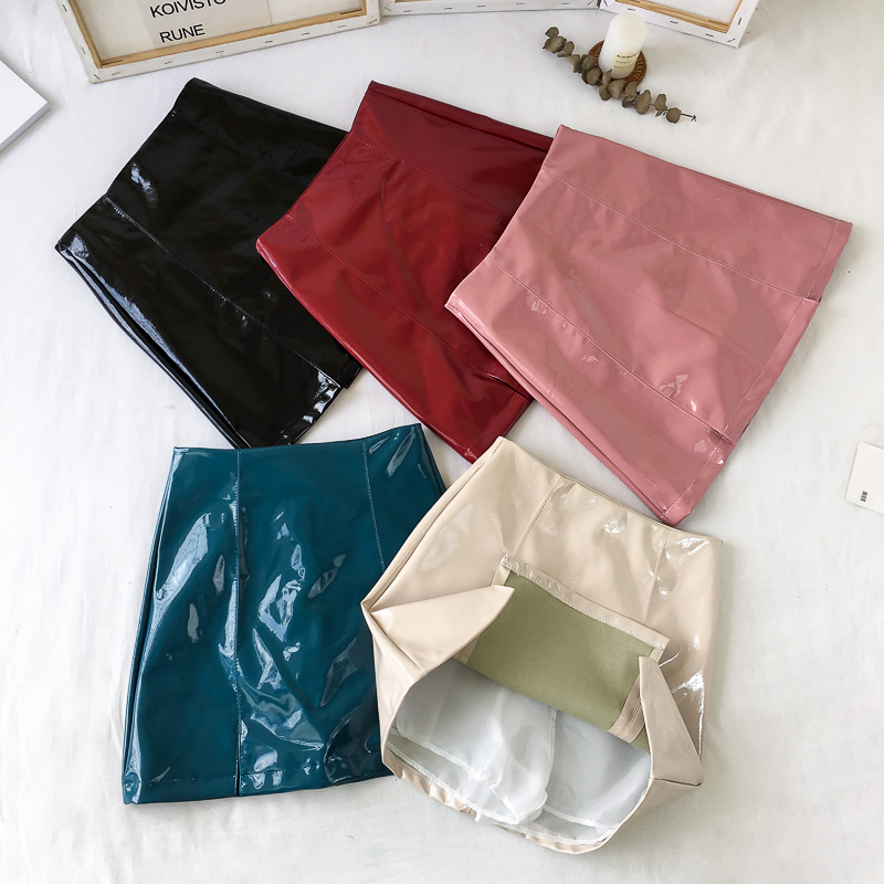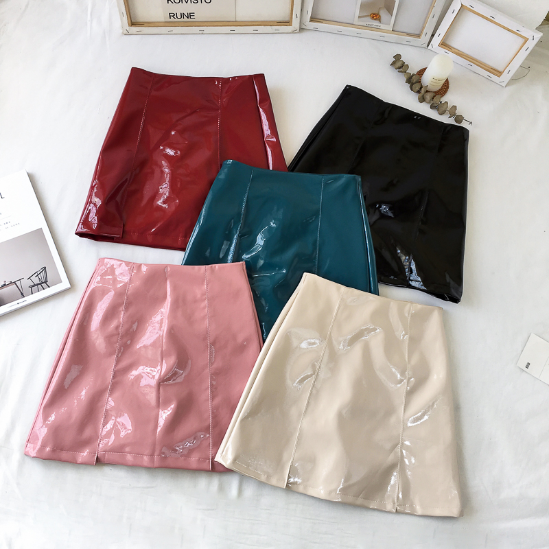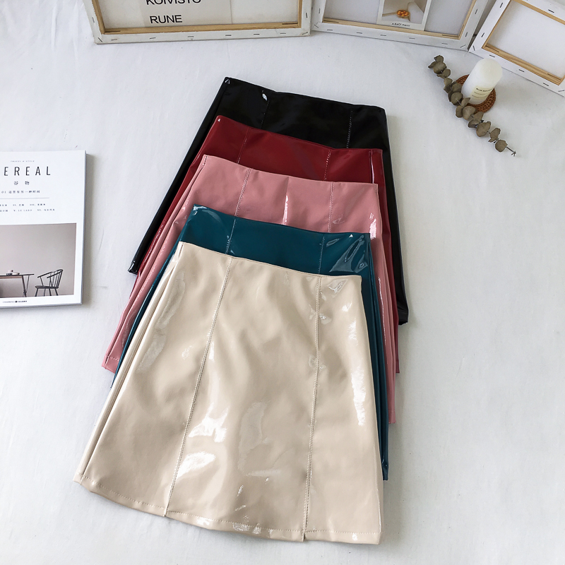 / 高腰顯瘦復古chic韓版百搭亮皮新款秋季皮裙a字裙半身裙包臀裙女