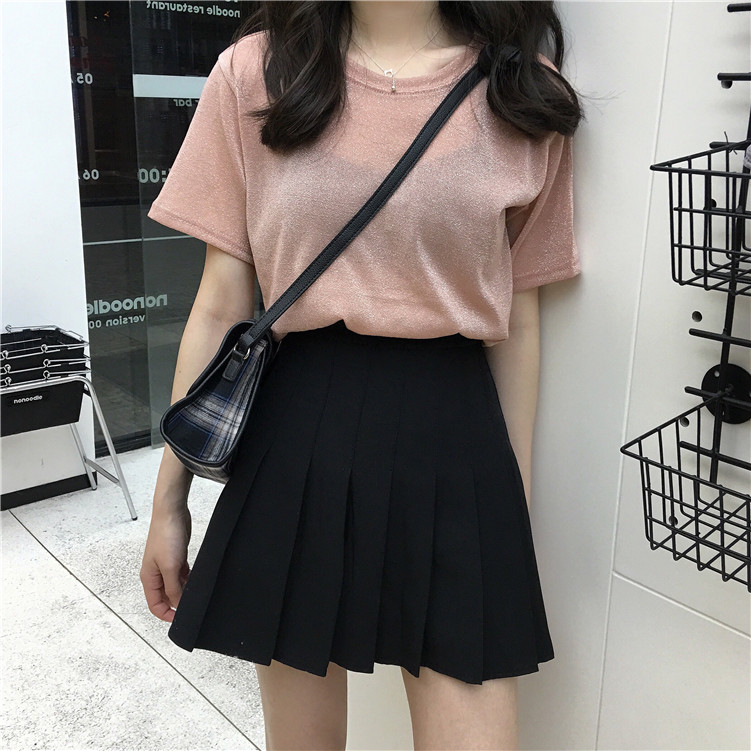 / 2018新款韓版高腰百褶半身裙女純色修身顯瘦百搭時尚chic學生短裙